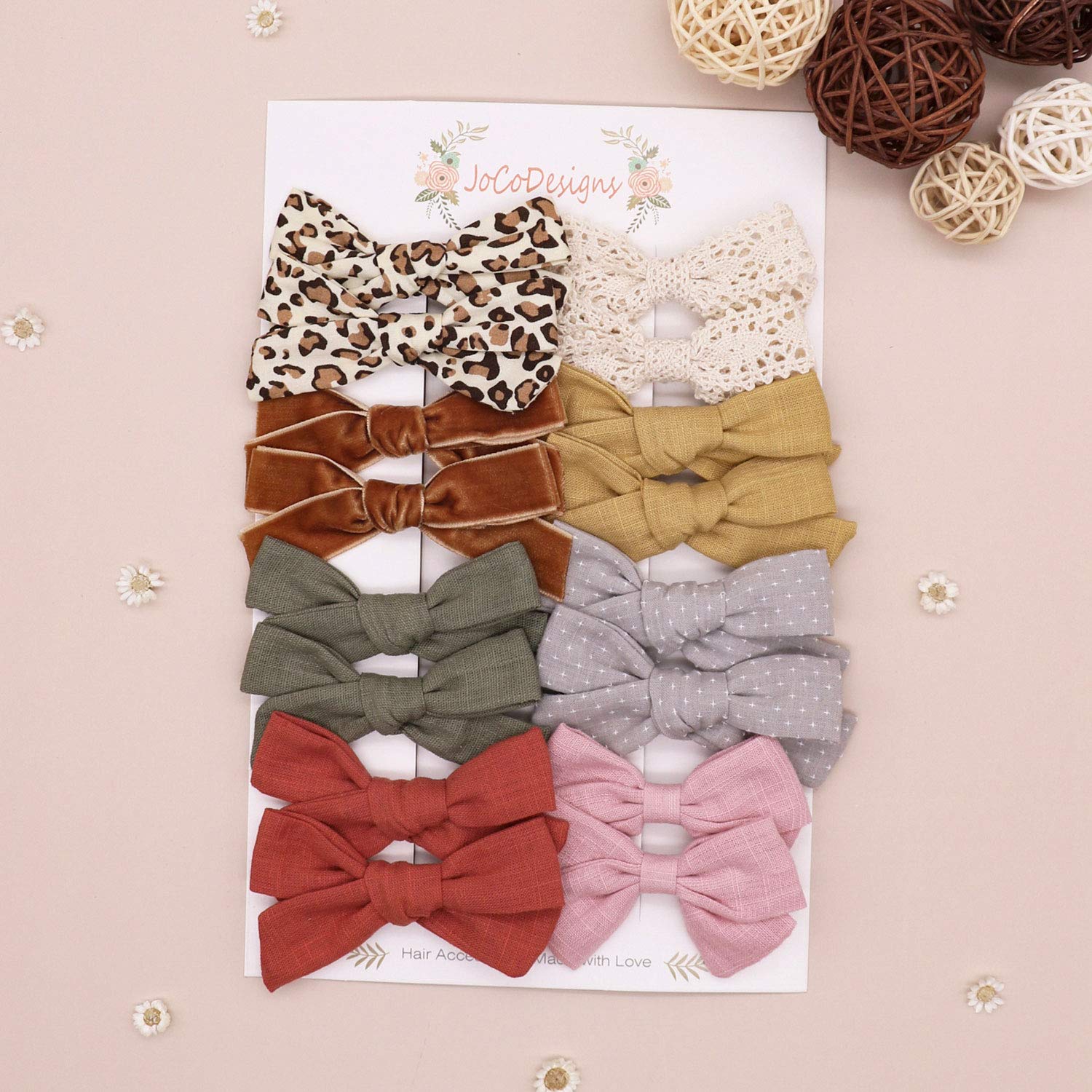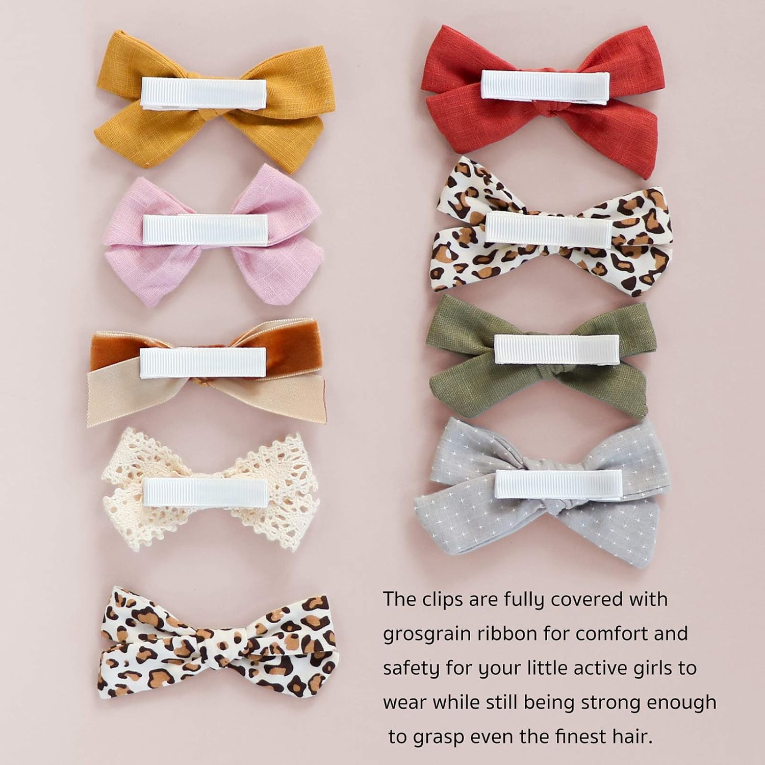 Elevate your little girlâs look with this charming 16-piece hair bow set. Designed with style, comfort, and durability in mind, these clips are perfect for everyday wear, special events, or as a thoughtful gift. Each bow features a hand-stitched design made from soft, organic fabrics like cotton, velvet, and linen, offering a gentle touch for delicate hair.