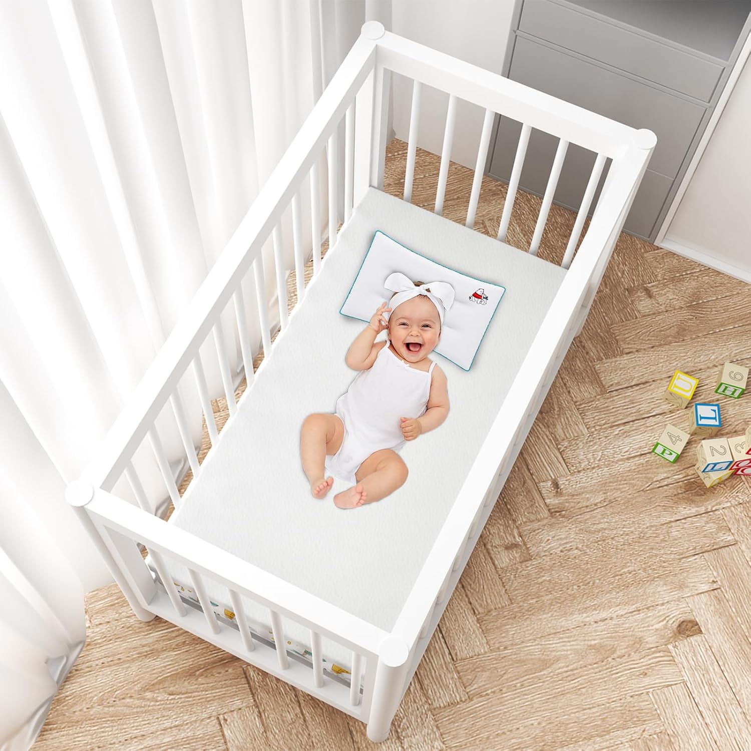 Made with high-density gel-infused memory foam, this topper helps regulate temperature and provides a cool surface for your baby. The gentle contouring of the foam supports the natural curve of your childâs body, promoting a deeper, more restful sleep. The CertiPUR-US certification ensures that all materials used are free from harmful substances, making it safe for your baby's delicate skin and environment.
