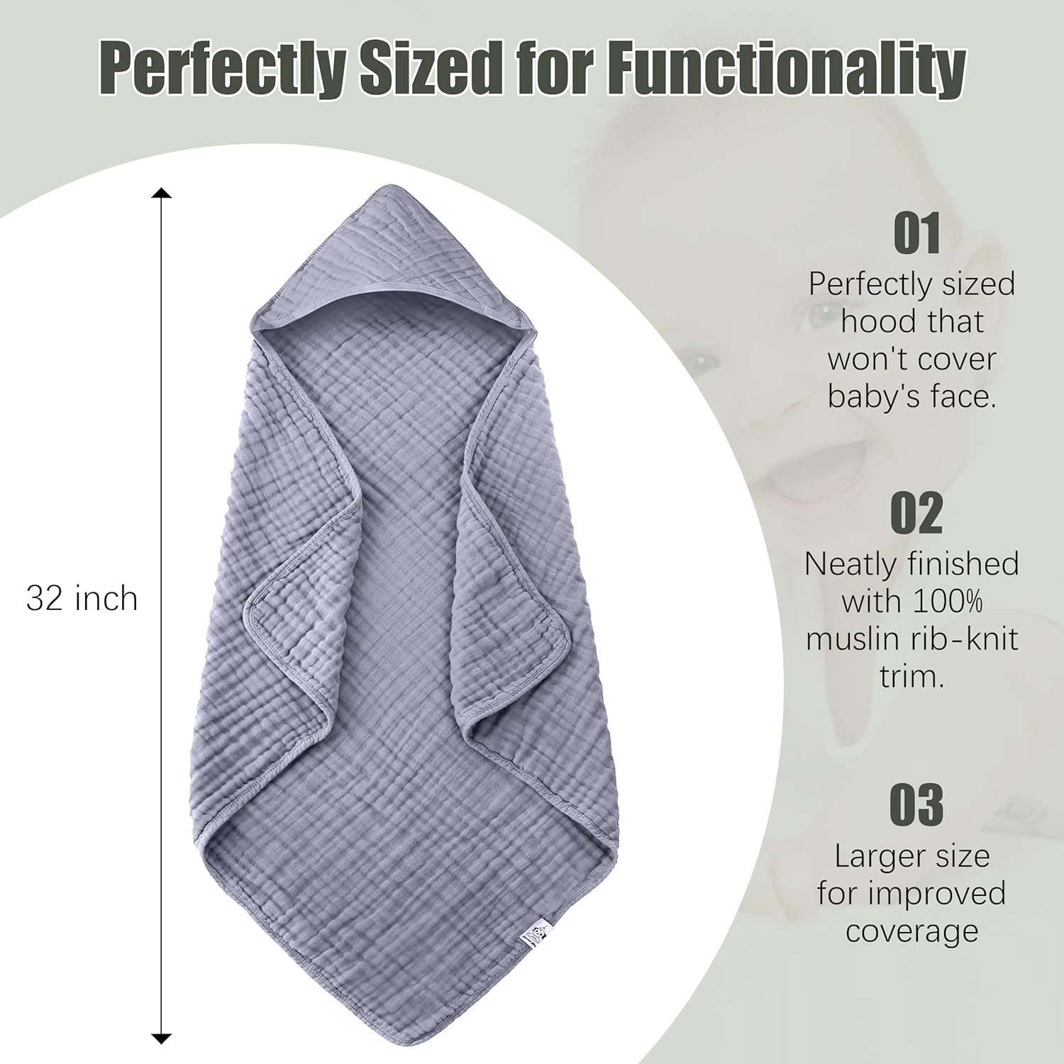 Each towel features a generous 32x32 inch size, providing complete coverage for newborns, infants, toddlers, and young children up to 3 years old. The hood design helps keep your baby warm and protected while drying off, making these towels a great addition to your baby care routine.
