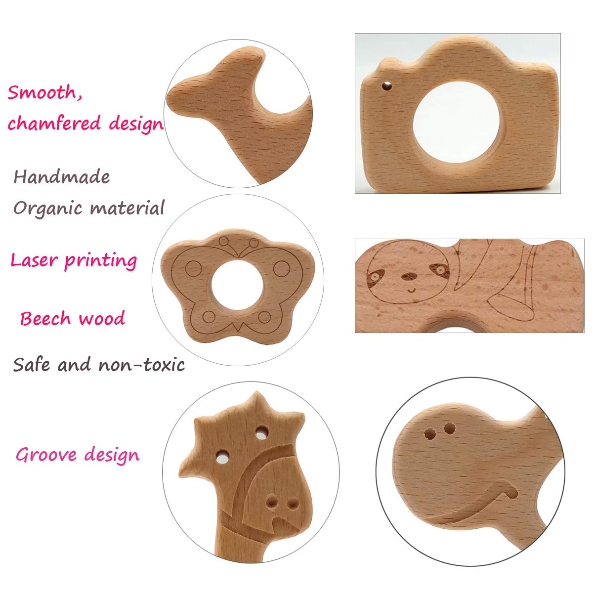 2pcs Natural Beech Wood Squirrel Teether Pendant
