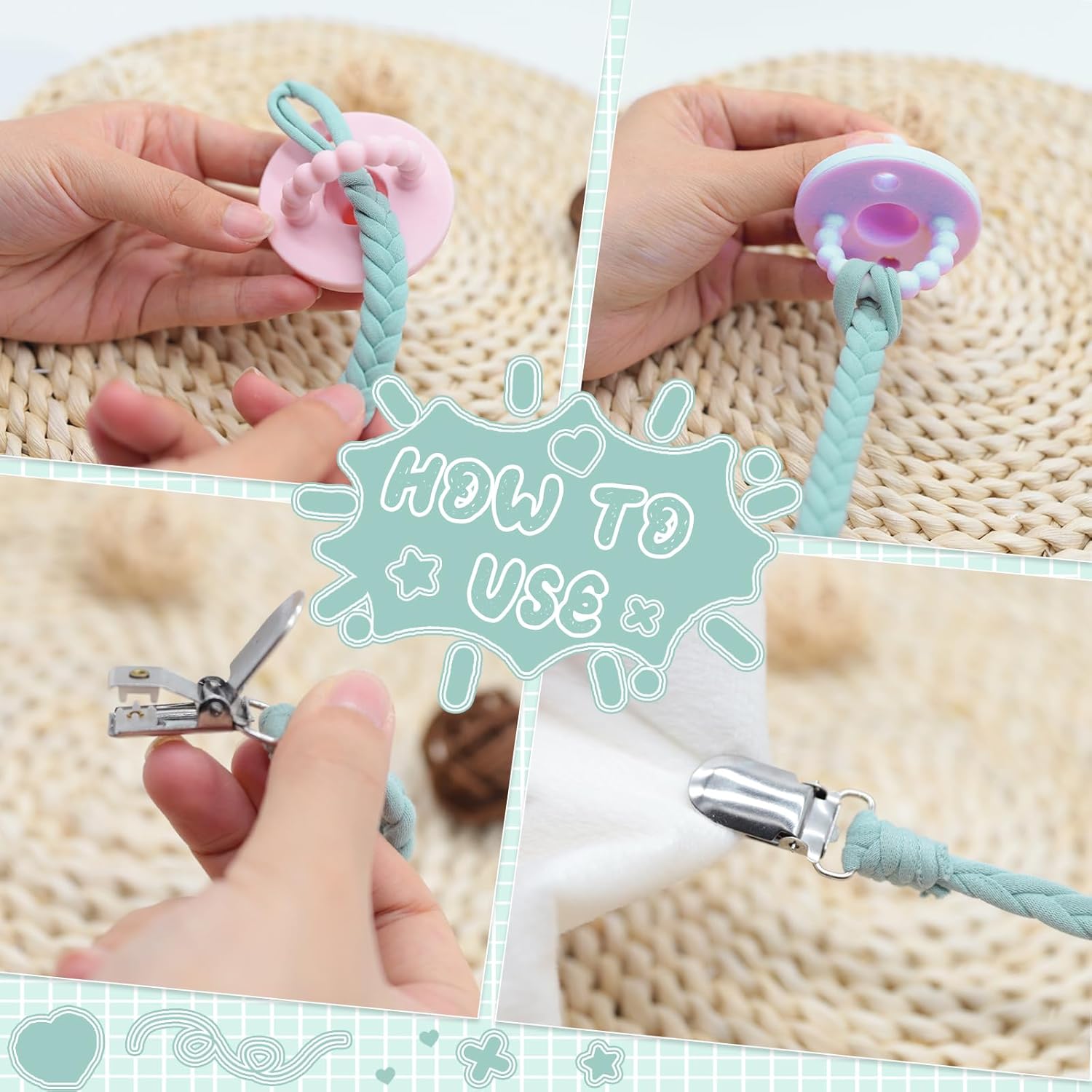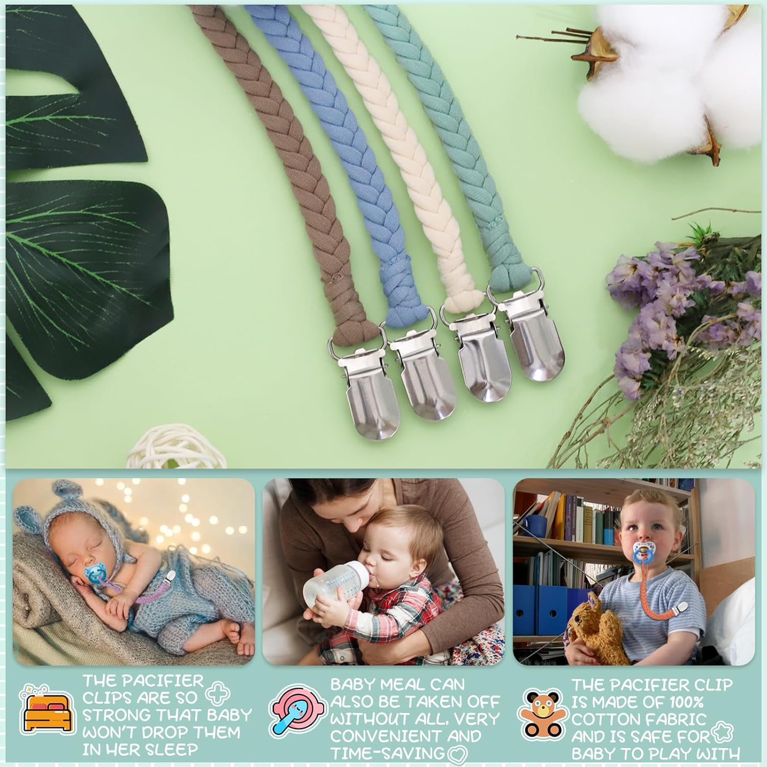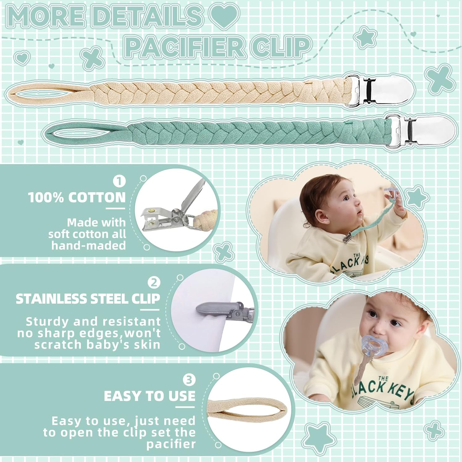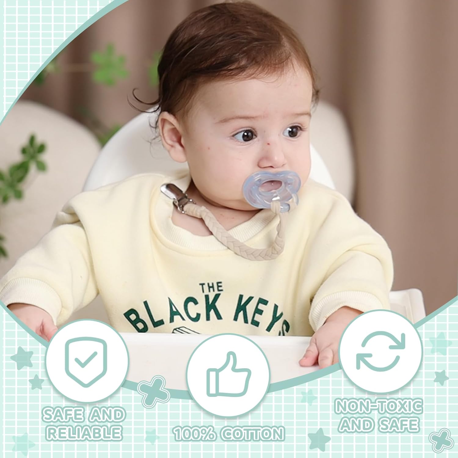 Whether you're looking for a thoughtful gift or a reliable accessory for your little one, these pacifier clips are ideal for both newborns and older babies. The universal fit design makes them compatible with most standard pacifiers and teethers, so you donât have to worry about sizing or compatibility. With a nickel-free braided construction, they eliminate the risk of scratches, supporting your babyâs safe and healthy development.