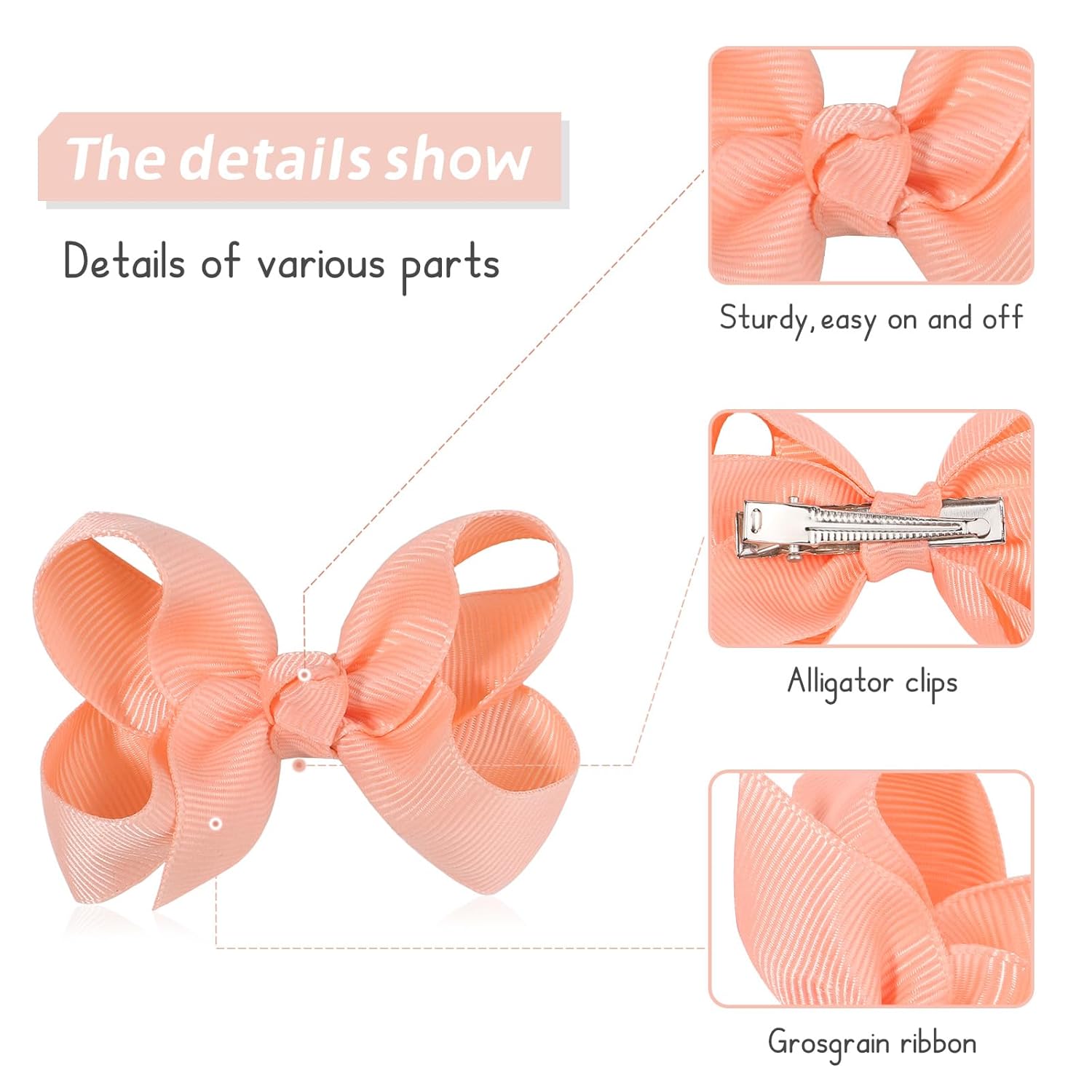 These 50 hair bows for girls are designed with both style and practicality in mind. Each bow is made from high-quality 3-inch grosgrain ribbon, offering a smooth, refined look that complements any outfit. The sturdy alligator clip ensures a secure hold, keeping hair in place without slipping or pulling. Whether your little one is dressed for a special event or just a regular day, these hair accessories are a versatile addition to their daily routine.