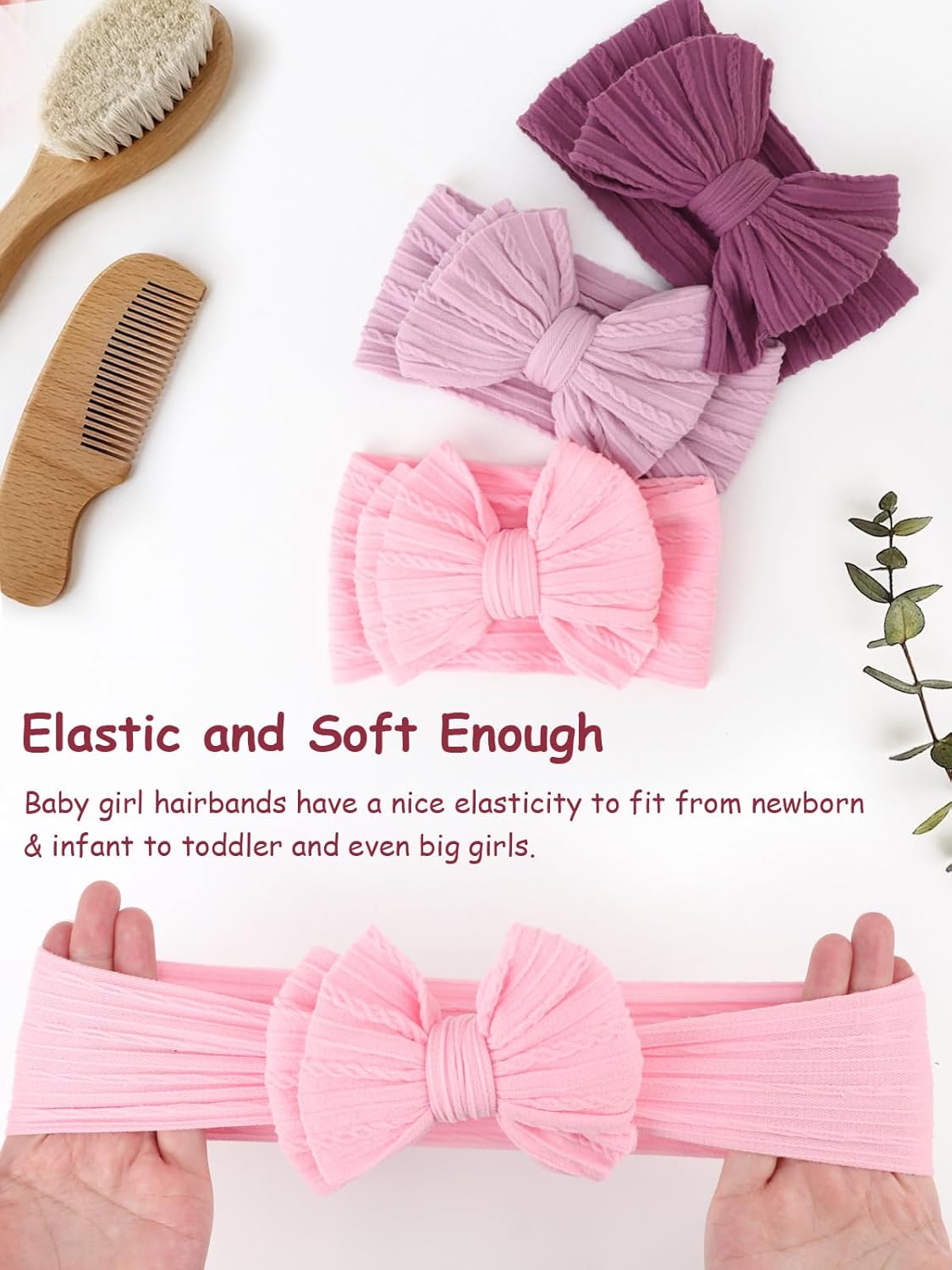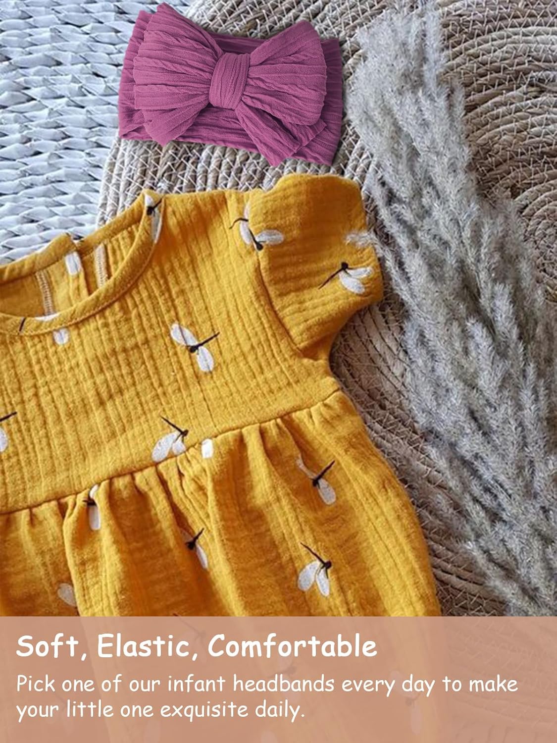 AQOKKA baby bows headbands are the ultimate touch of charm for your little one. Designed with a large, intricately crafted bow, these headbands effortlessly enhance your baby girlâs appearance, bringing out her natural cuteness. The soft and stretchy blend of 95% nylon and 5% spandex ensures a comfortable, flexible fit that adapts to your babyâs head as they grow.