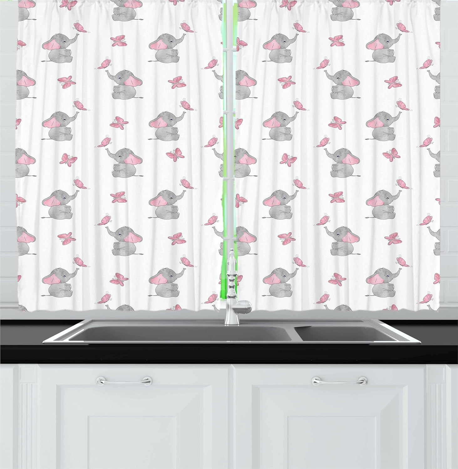 Add a touch of whimsy and softness to your kitchen or nursery with these beautifully designed Ambesonne Elephant Nursery Curtains. The 2-panel set features a delightful baby elephant and butterfly pattern that brings a playful, child-friendly vibe to any room. Perfect for creating a warm and inviting atmosphere, these curtains blend style with functionality in a way that enhances both modern and cozy decor styles.