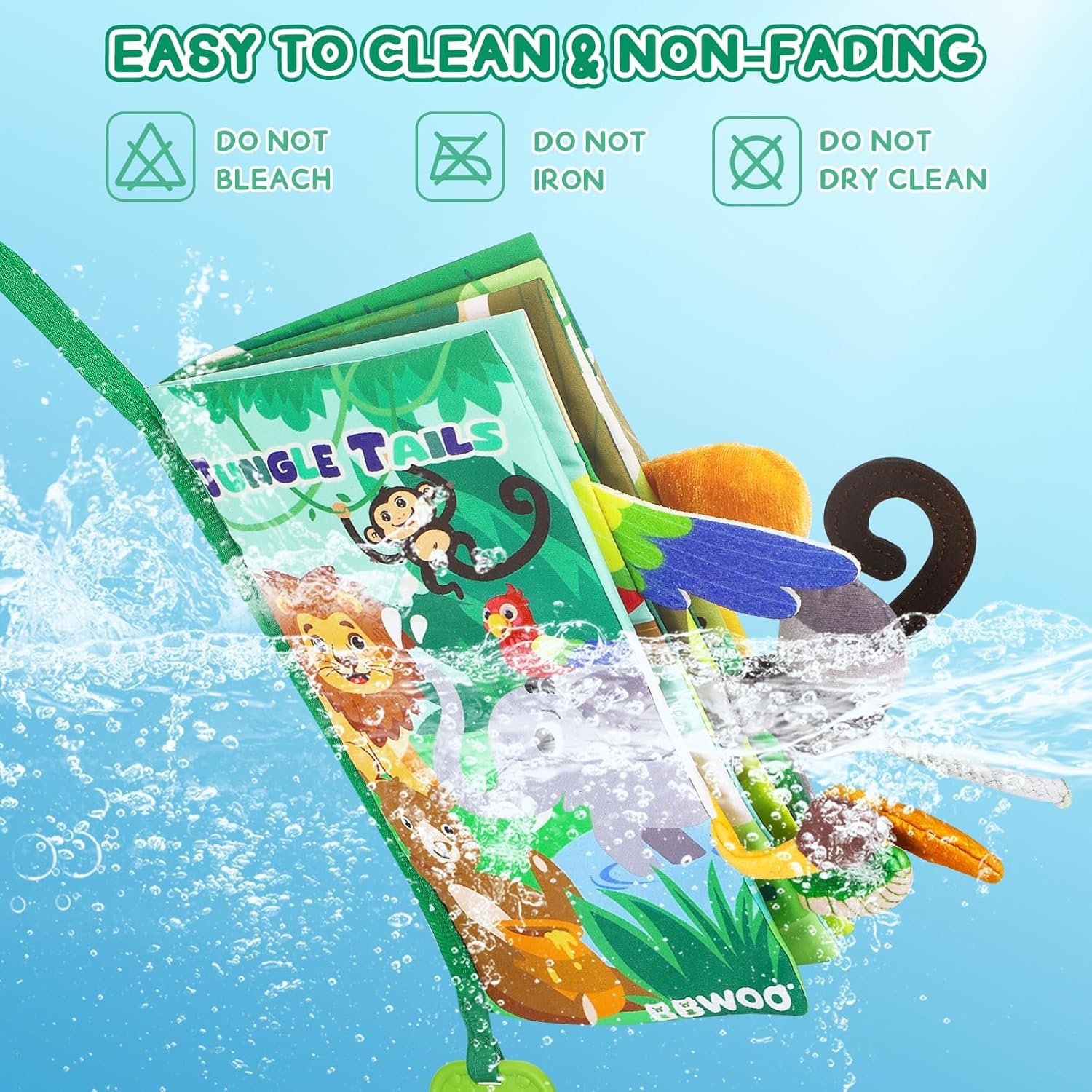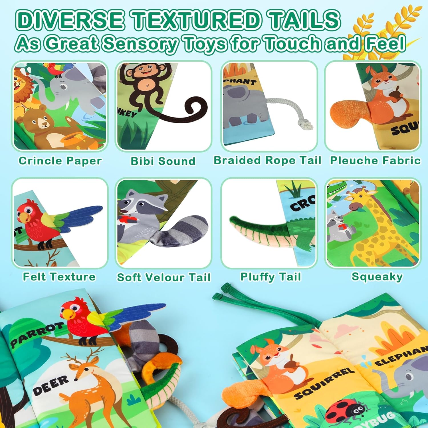 Each leaf of the book is adorned with textured animal tails that encourage touch-and-feel interaction, helping to build fine motor skills and keep your child happily occupied. Whether you're enjoying tummy time at home or on the go, this toy delivers both visual and auditory stimulation, promoting cognitive development and curiosity.