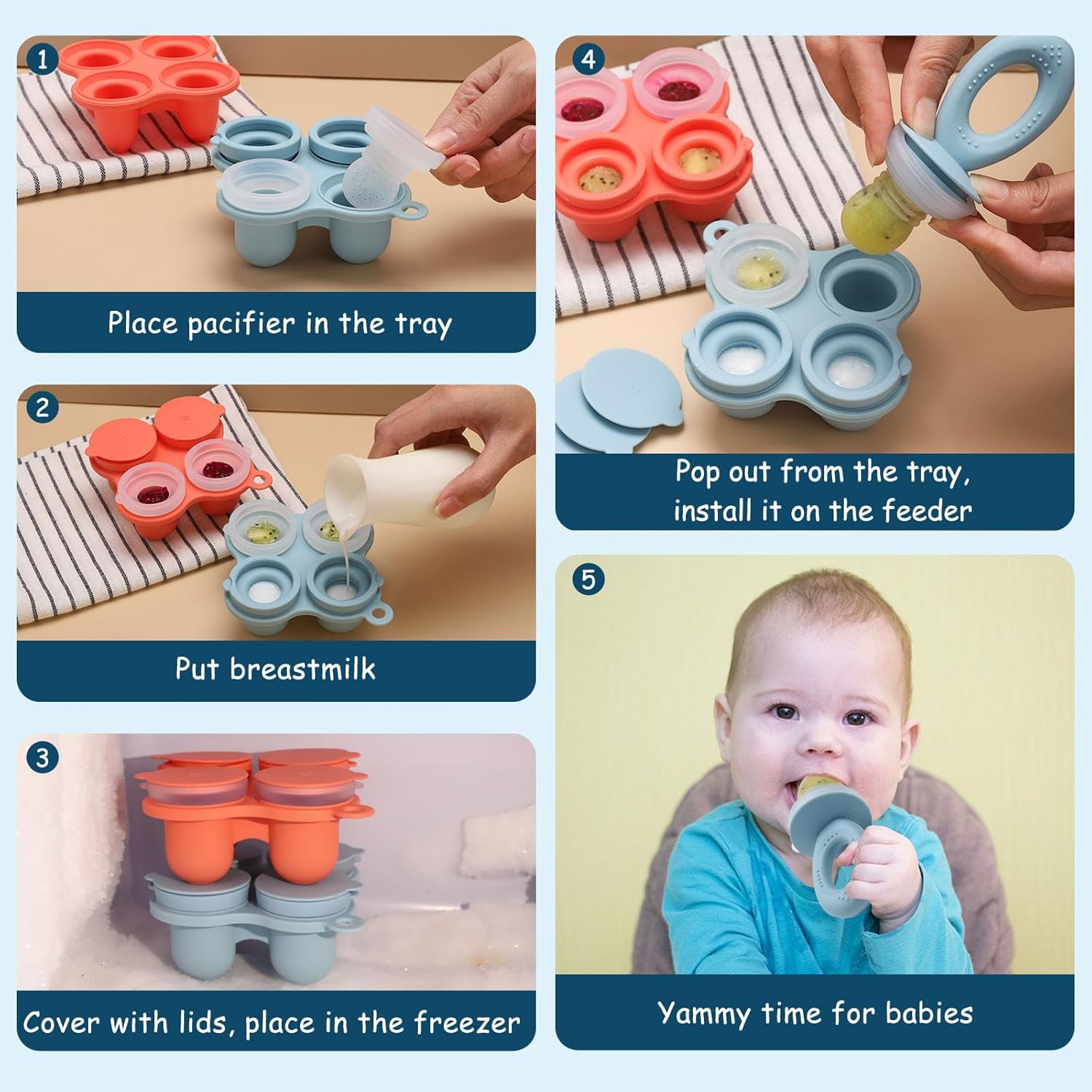 Fast-freeze breast milk or fresh purees with our popsicle molds, which are designed for easy storage and thawing. These silicone molds keep your babyâs food safe and ready to eat whenever needed.