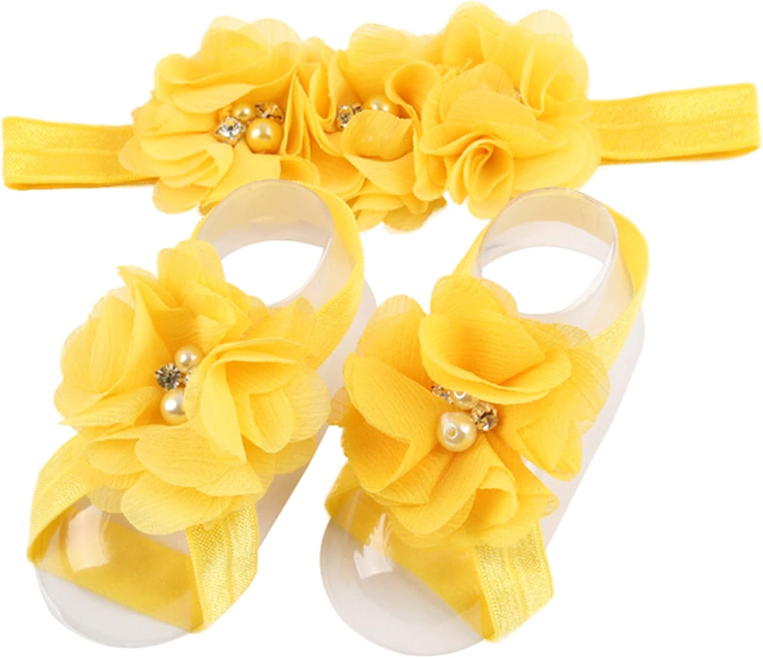 This charming baby girl headband and foot flower set is designed with love, blending elegant floral details with a stylish, secure fit. Created from soft chiffon and flexible elastic, it ensures comfort while staying in place during any activity. The dazzling rhinestone embellishments add a touch of glamour, making this set a perfect addition to special moments like baby showers, birthdays, and photo sessions.