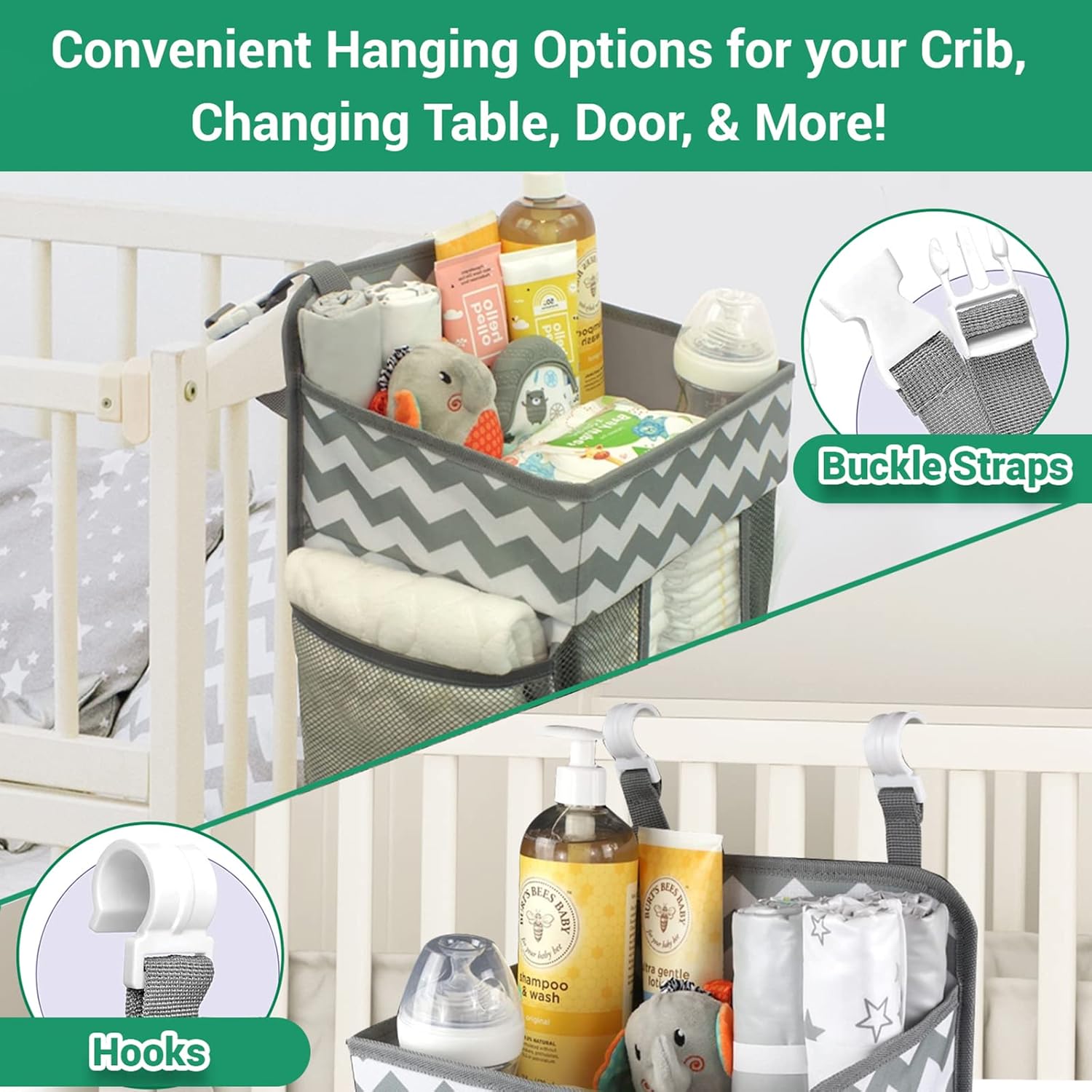 Designed with both style and function in mind, the Babywards Hanging Diaper Caddy is the perfect solution for parents who want to stay organized while caring for their little one. With a spacious main compartment and three side mesh pockets, it gives you easy access to diapers, wipes, bottles, baby powder, and more. Whether you're in the middle of a diaper change or preparing for bedtime, this caddy has everything you need within armâs reach.