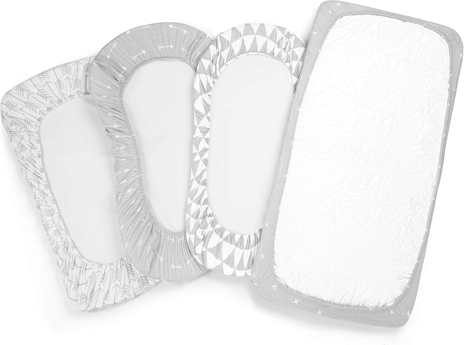 They fit both standard oval bassinets and Halo-style bassinets, making them an ideal choice for a wide range of baby products. The 4-pack includes enough sheets to replace or rotate regularly, helping you keep your baby cozy and clean throughout their early months.