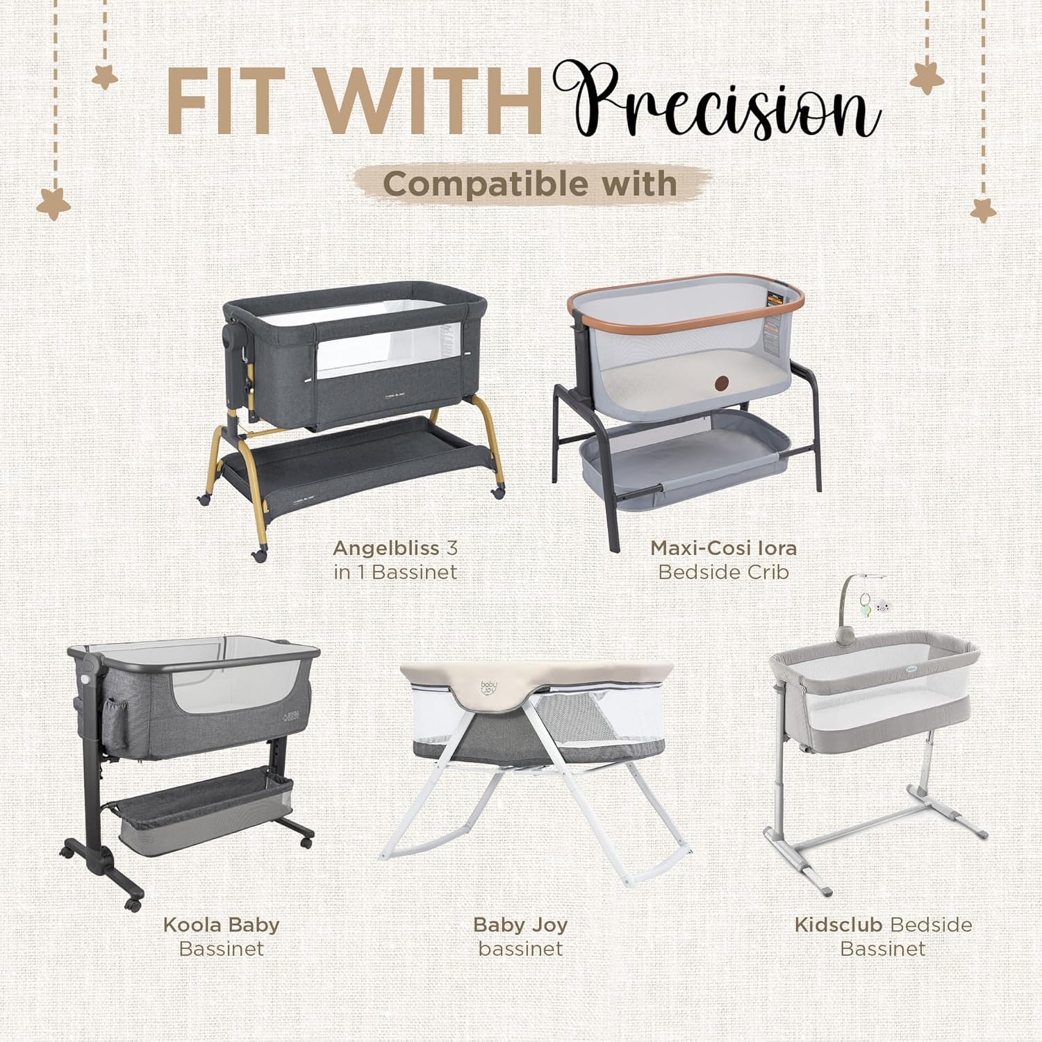 Crafted from 100% organic muslin cotton, these bassinet sheets offer a gentle and soft touch for your babyâs delicate skin. The breathability of the fabric ensures a comfortable and cool sleep environment, making it ideal for warm weather nights. Whether you're using a Maxi COSI Iora, Baby Joy, or Kids Club bedside sleeper, these fitted sheets are designed to fit perfectly and provide a snug wrap around the mattress.