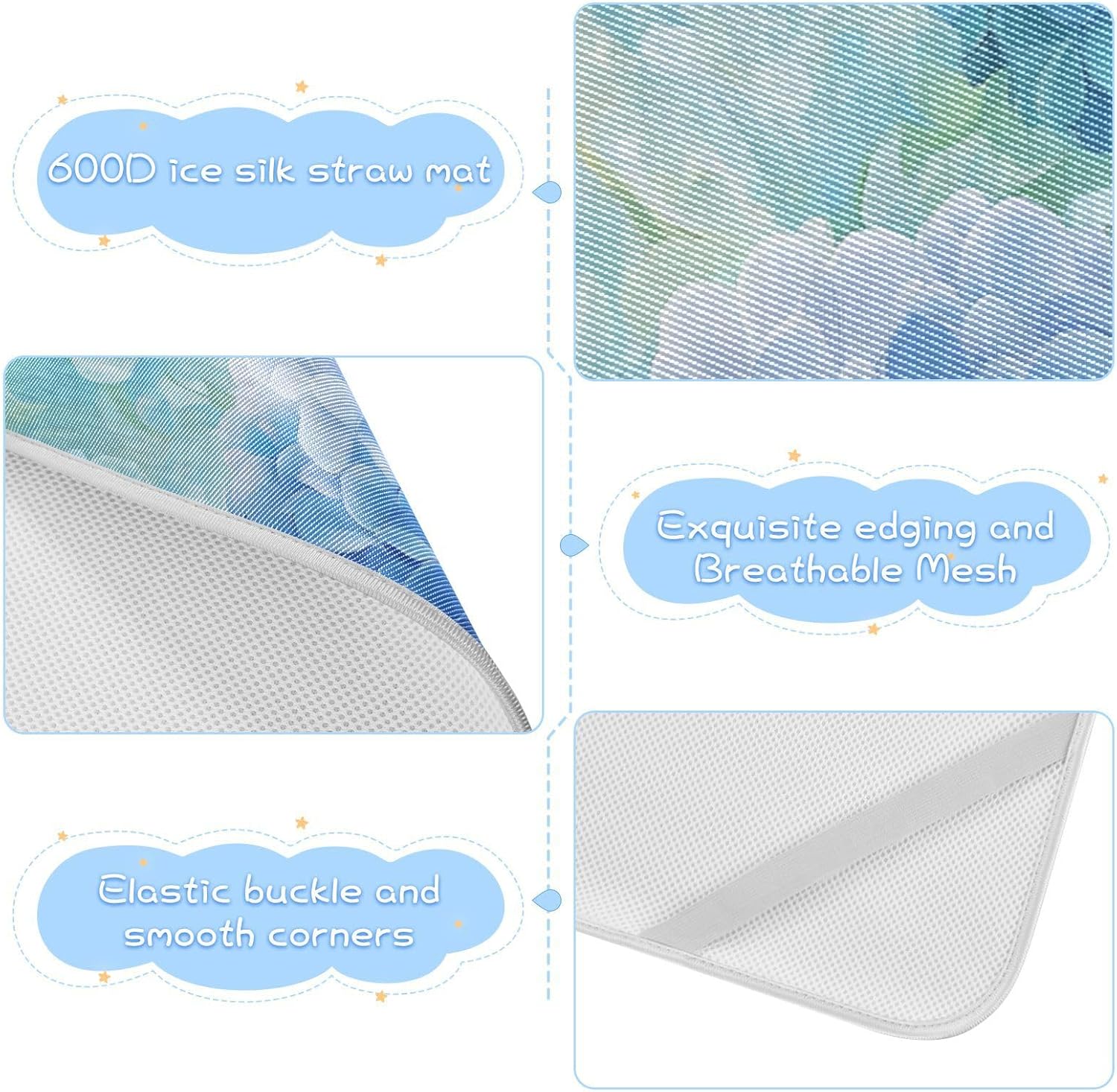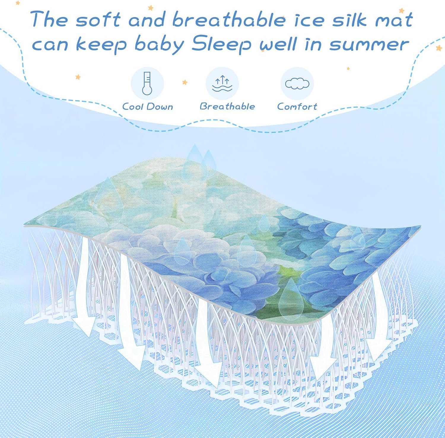 Experience the perfect blend of comfort and safety with our Blue Hydrangea Motto cooling baby mattress topper. Engineered with advanced cooling technology, it ensures your little one stays cool and comfortable throughout the night, especially during warm summer months.
