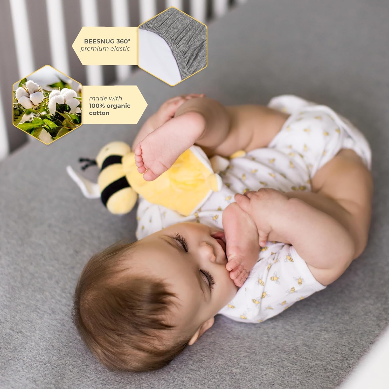 Designed to provide your baby with the softest, safest sleep experience, these organic crib sheets are crafted from 100% organic cotton. Gentle on sensitive skin and perfect for a cozy, comfortable night's rest, they bring a touch of style and care to your nursery. Our organic cotton crib sheets are hypoallergenic and free from harmful chemicals, making them ideal for your baby's delicate skin. The fabric is ultra-soft and retains its comfort even after multiple washes, ensuring a peaceful sleep for every night. With a breathable design, these crib sheets help regulate your baby's body temperature, keeping them cool and refreshed throughout the night. The fabric's natural properties promote airflow, preventing overheating and creating a relaxed sleep environment. These crib sheets are designed with a gender-neutral aesthetic, fitting seamlessly into any nursery theme. Their charming prints bring a touch of personality to your babyâs room, making them both stylish and versatile for your growing family. Engineered for a snug fit, these sheets secure your standard crib or toddler mattress in place. This ensures a stable and uninterrupted sleep for your baby, without the risk of shifting or wrinkling. The crib sheets are machine washable and durable, allowing for effortless cleaning and long-term use. They maintain their softness and appearance even after repeated washes, providing consistent comfort and value over time. As a trusted brand with a commitment to quality and eco-friendly materials, Burt's Bees Baby offers a reliable, breathable, and stylish solution for your child's sleep needs. Upgrade your nursery with sheets that are both safe and comfortable for your babyâs every sleep moment.Burt's Bees Baby Essential Organic Cotton Fitted Crib Sheet