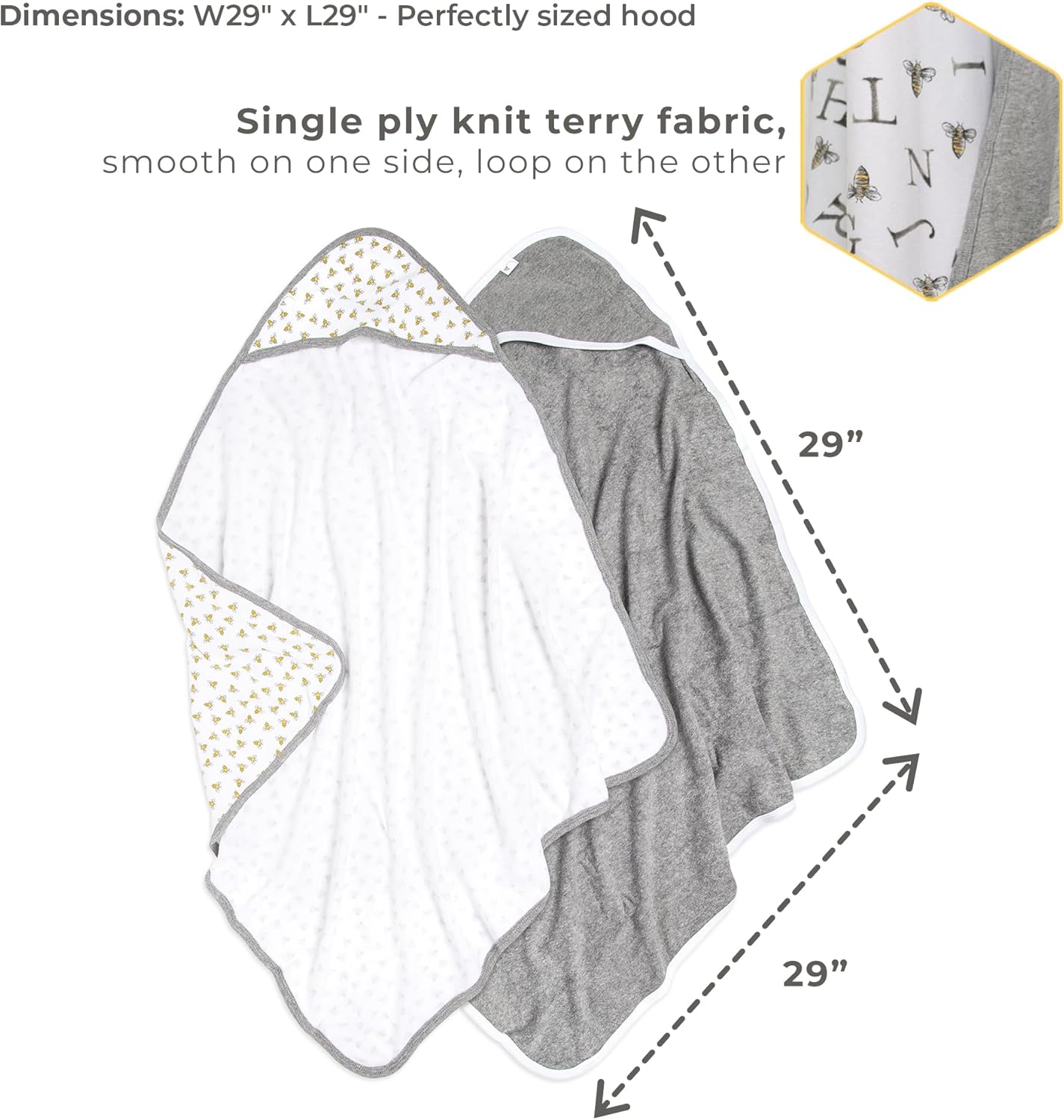 These hooded towels are made from 100% organic cotton, ensuring a gentle, hypoallergenic feel that's perfect for your babyâs sensitive skin. The single-ply knit terry fabric is ultra-absorbent and incredibly soft, turning bath time into a more soothing and pleasant experience for your little one.