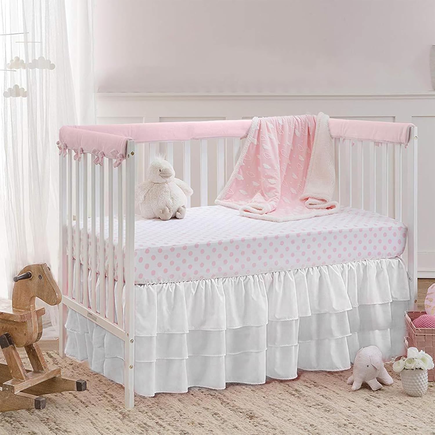 Whether you're looking to create a cozy atmosphere or simply want an easy-to-maintain solution, this crib skirt delivers on both fronts. Its soft, breathable cotton ensures your baby sleeps in comfort, and the easy-to-clean design saves you time. The 17.7" drop effectively hides clutter, while the classic white color adds timeless appeal. A perfect choice for any nursery, this ruffled crib skirt brings both beauty and practicality to your babyâs room.
