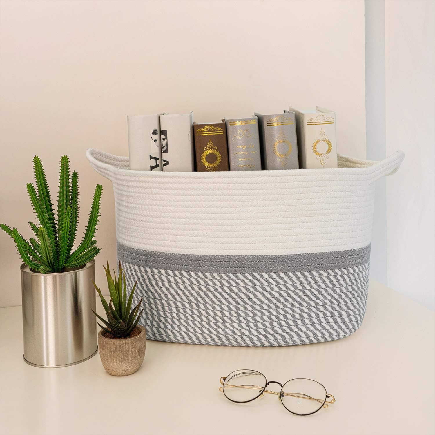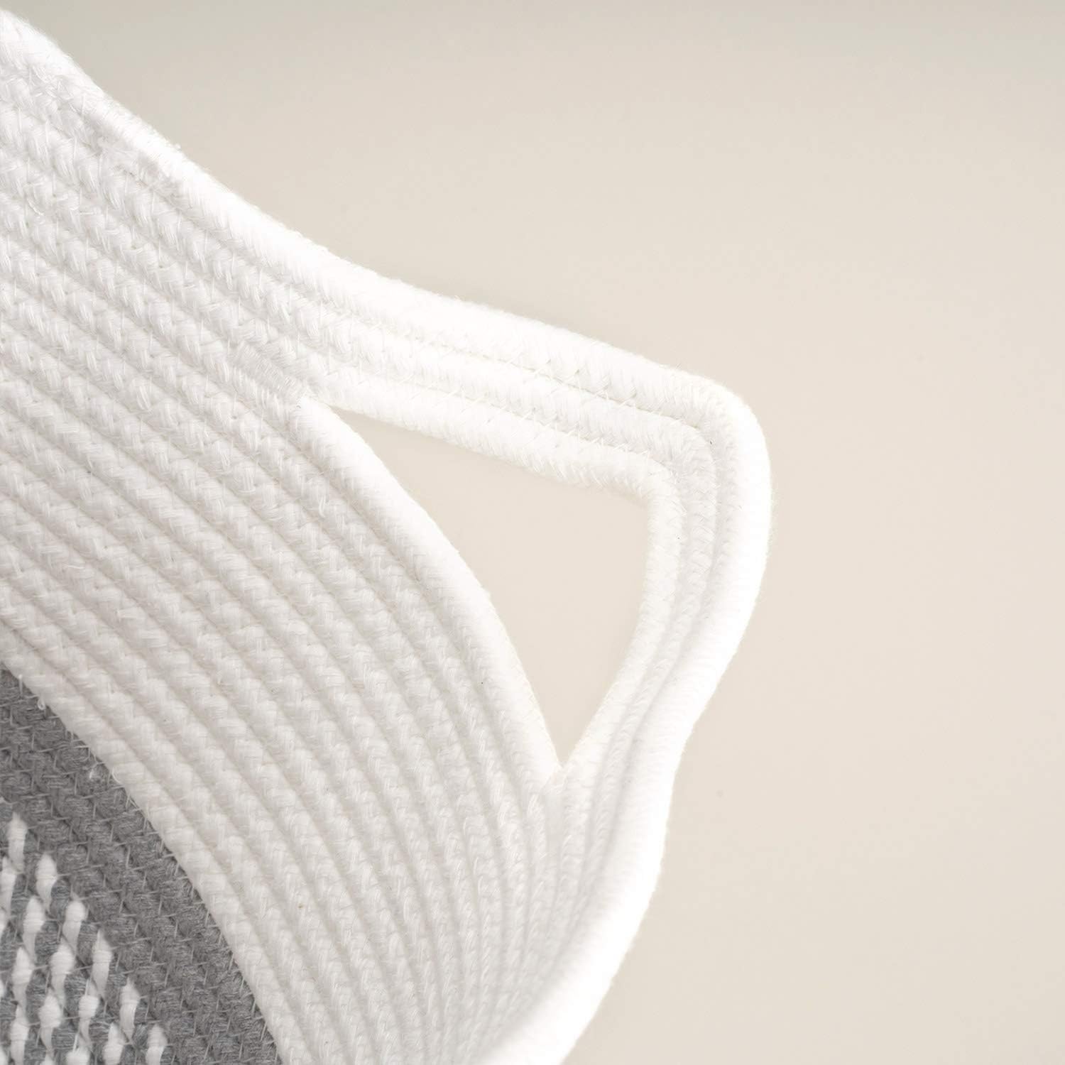 This beautifully crafted square woven basket features durable and soft woven rope construction, ensuring both strength and comfort for everyday use. Itâs designed to be gentle on your hands and safe for your home, making it an ideal choice for families with kids or pets. With its elegant two-color pattern and cute handle ears, this basket adds a touch of charm and style to any space.