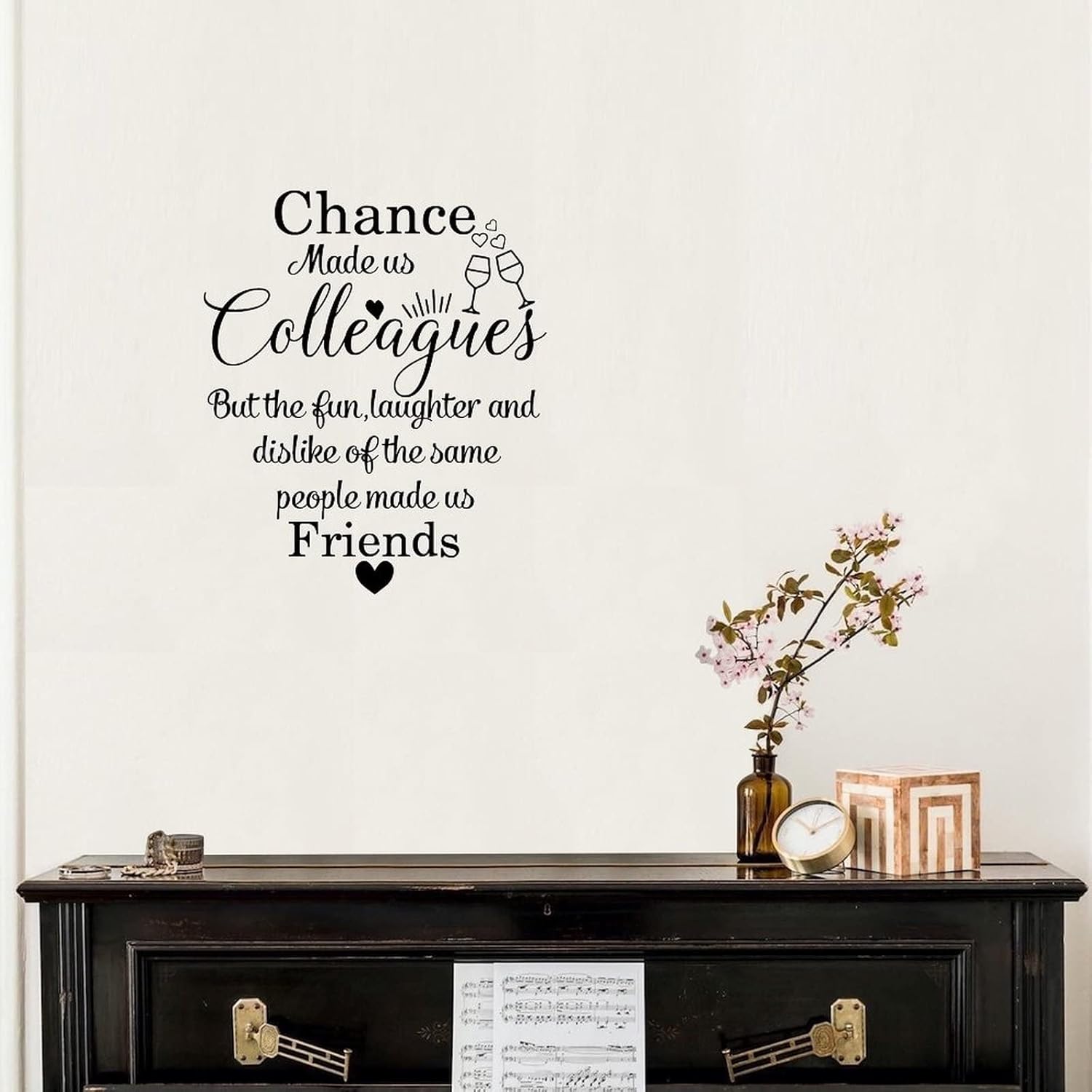 Brighten your walls with this vibrant wall decal that says, "Chance Made Us Colleagues." Itâs the perfect way to infuse humor, positivity, and a splash of personality into any room, whether itâs your kitchen, bedroom, or office.