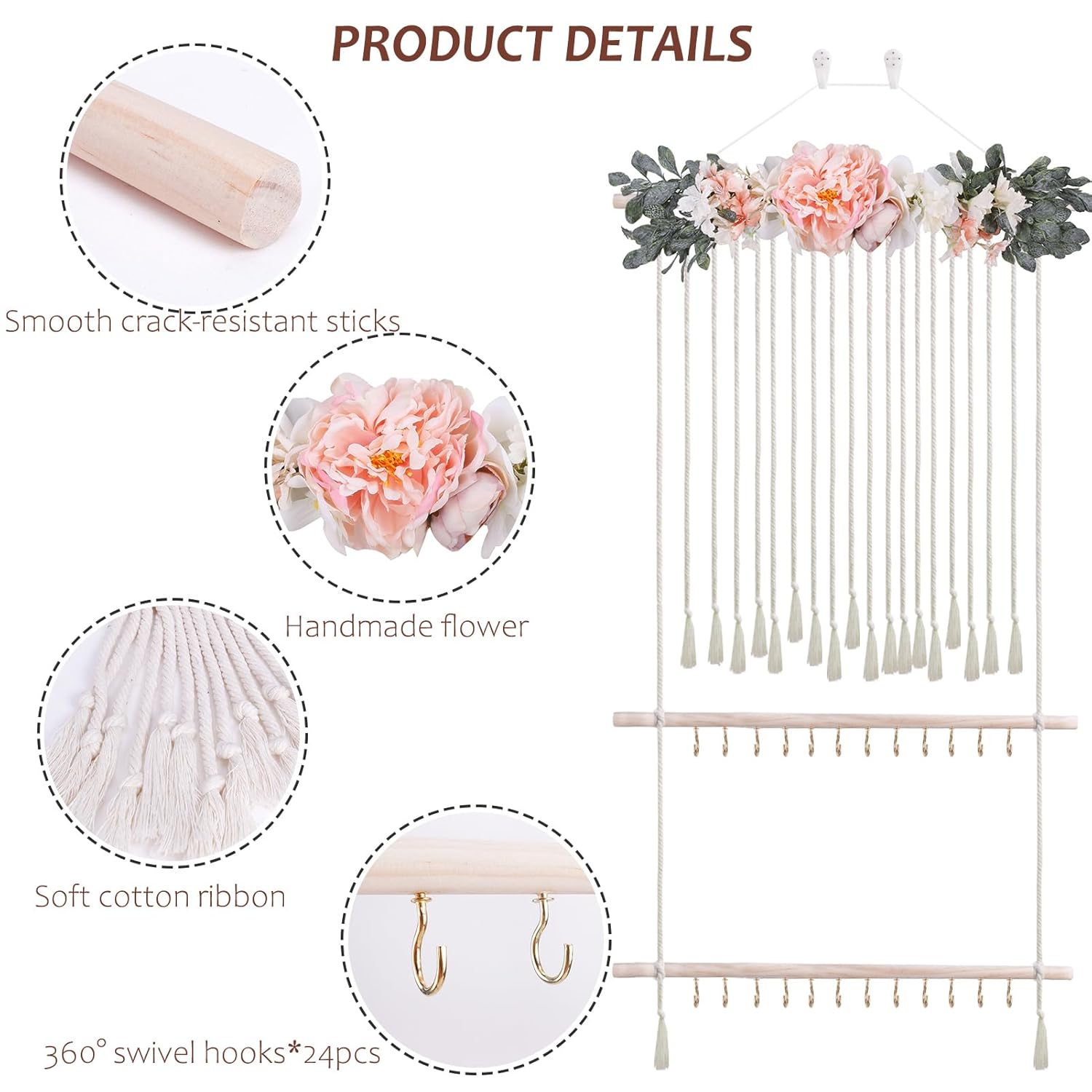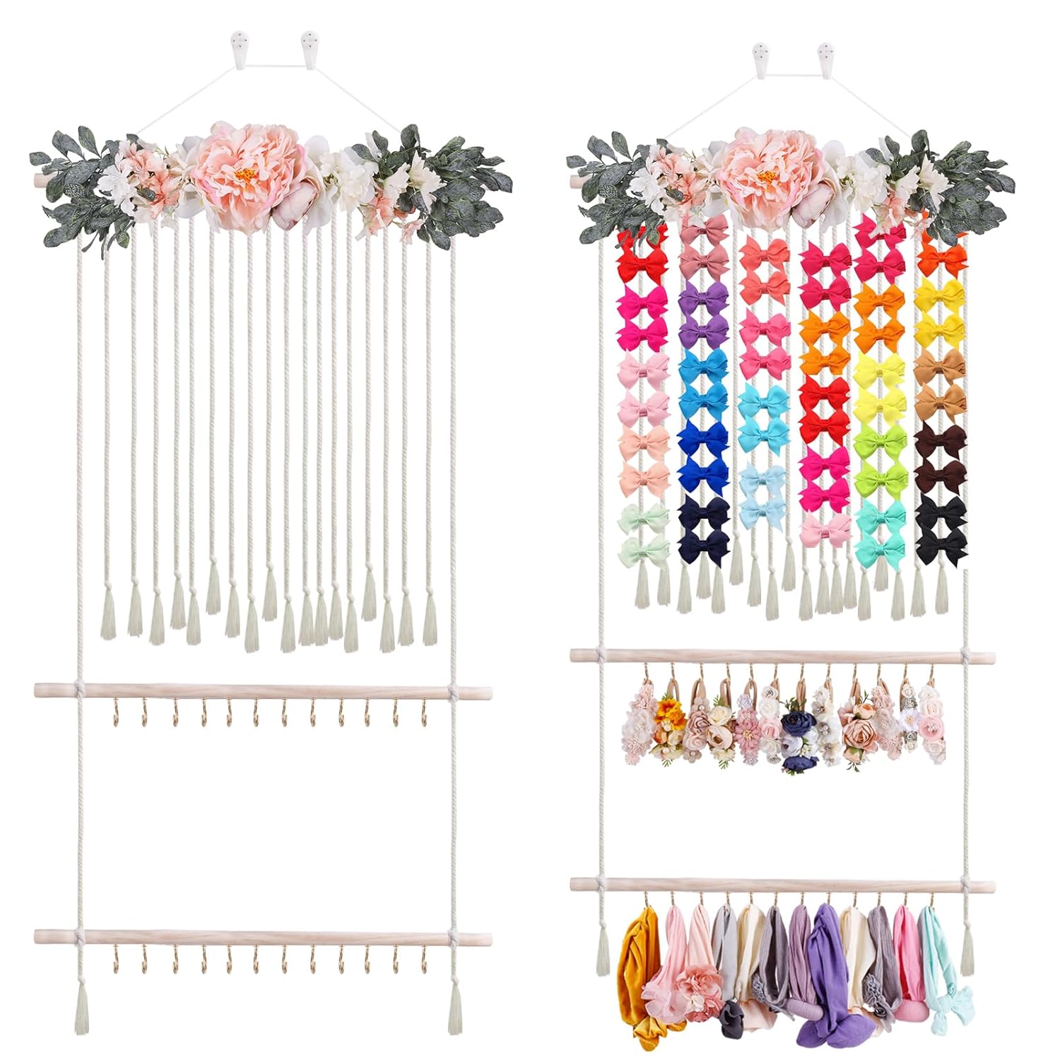 Keep your baby's hair decorations neat, tidy, and effortlessly accessible with this stylish and functional hair bow holder. Designed with 24 evenly spaced metal hooks, it offers easy storage and wall mounting options to maximize space in your nursery or baby room.