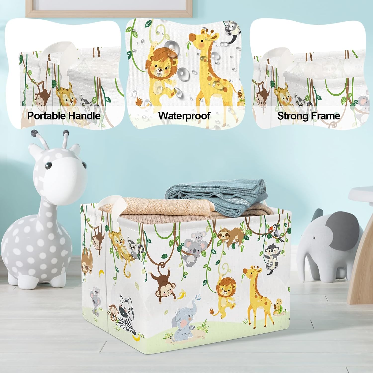 Style meets function with this delightful nursery basket that brings a touch of nature and whimsy to your baby's space. Designed with a woodland theme, it features a charming array of animals including the elephant, giraffe, lion, koala, sloth, and turtle, making it both educational and decorative. Ideal for toddlers and young children, it's more than just a storage solution â it adds warmth and charm to any room.