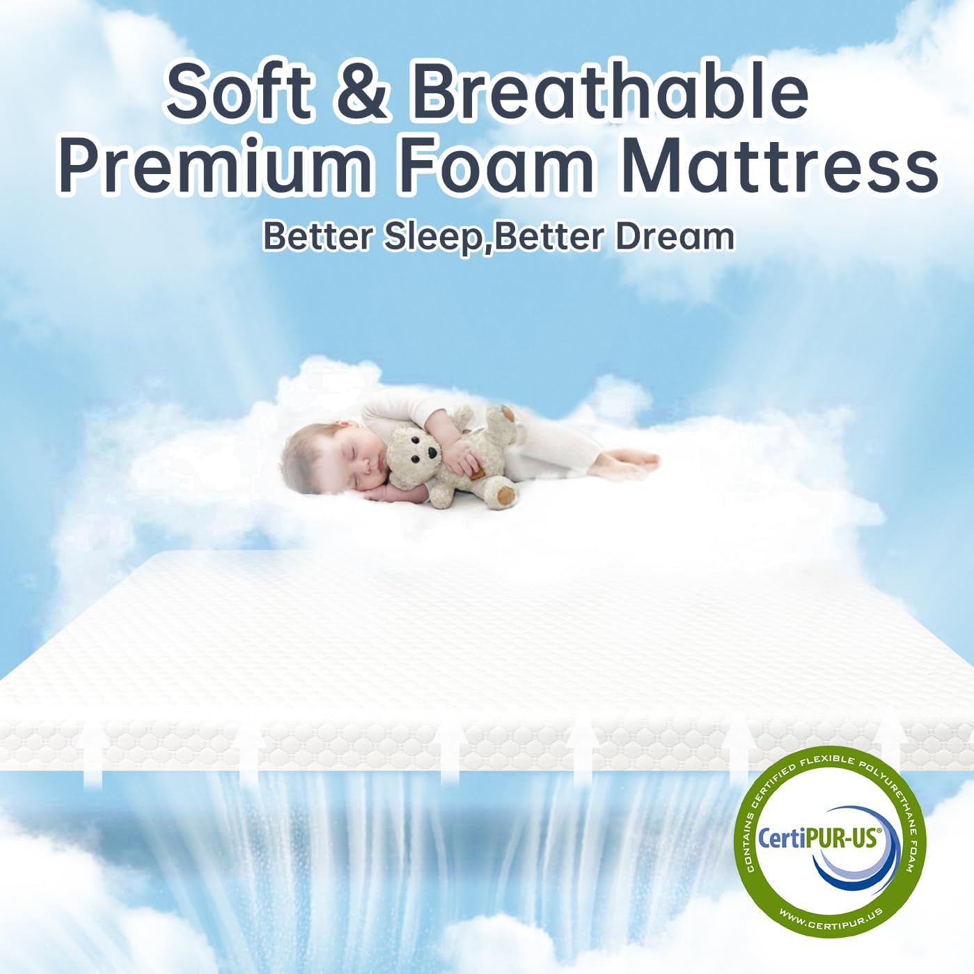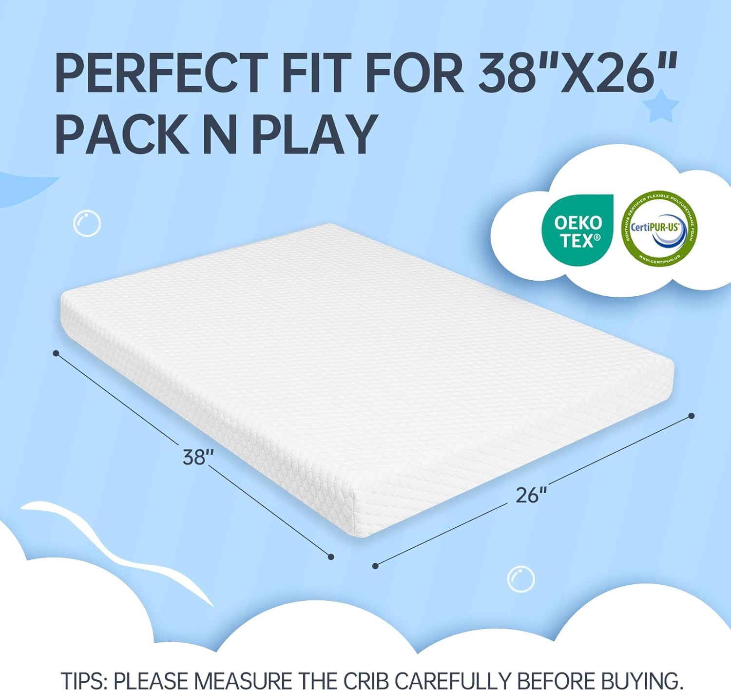 Give your baby the best sleep experience with the Cocellona Pack and Play Mattress Pad, designed for comfort, support, and safety. The dual-sided memory foam technology offers a perfect balance of firmness and softness, ensuring your baby stays cozy and secure throughout the night. The breathable, skin-friendly cover is easy to remove and machine washable, making it simple to maintain a clean and hygienic sleeping space.