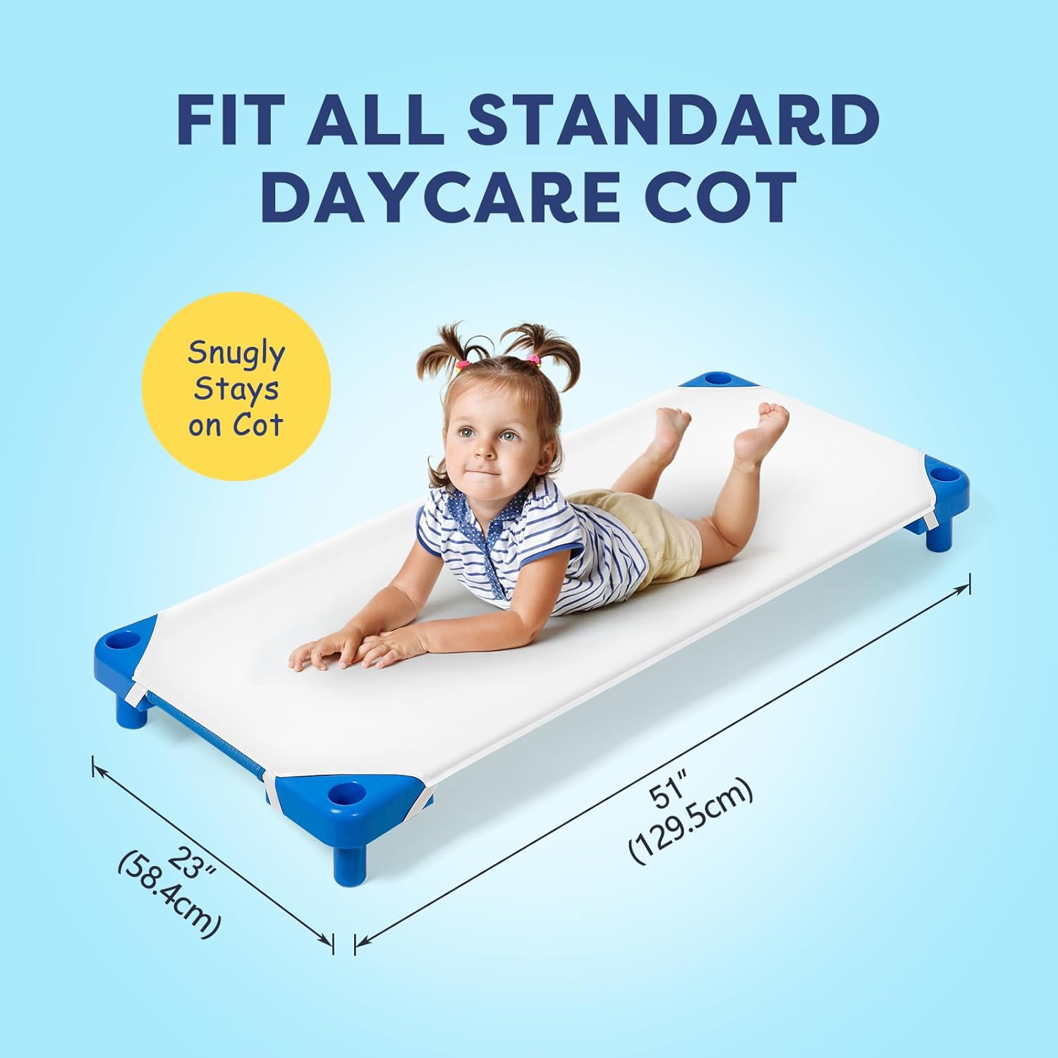The clever corner cut-out design makes these sheets stackable and space-efficient, helping daycare centers manage their limited storage more effectively. Plus, theyâre easy to machine-wash and dry, ensuring they stay clean, fresh, and ready for daily use. Whether you're a busy parent, a daycare provider, or looking for a thoughtful gift, these cot sheets offer the perfect blend of quality, comfort, and reliability.