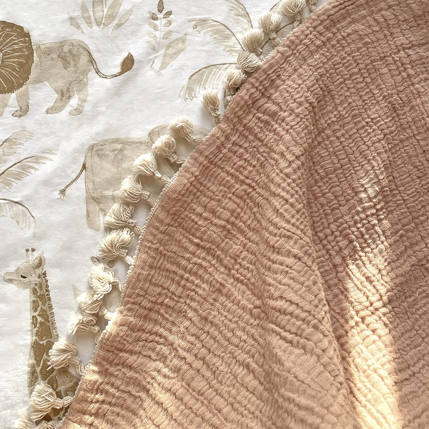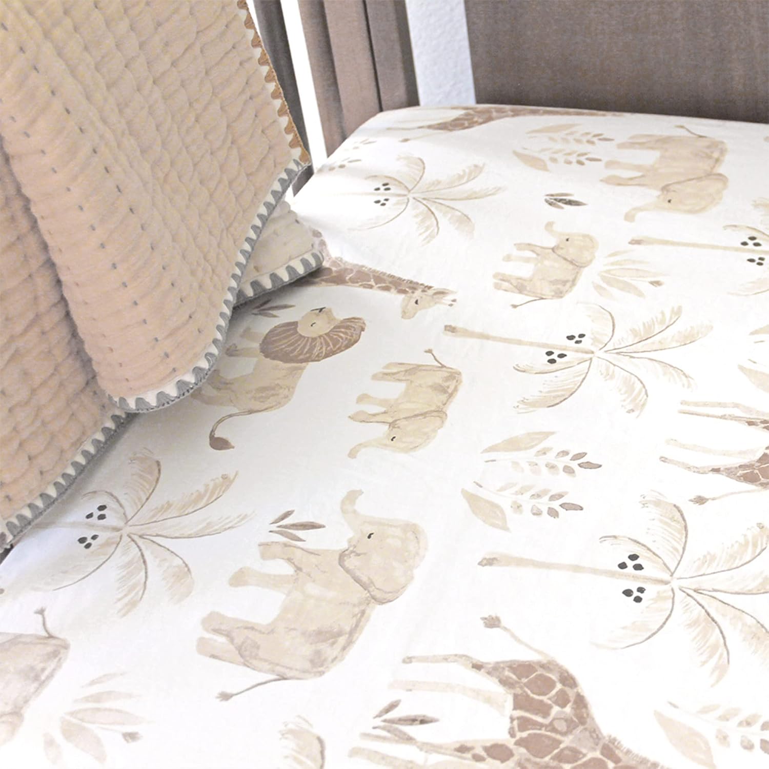 This crane baby crib sheet is more than just a bed covering â itâs an immersive safari animal crib bedding that adds charm and character to your nursery. Designed with both style and functionality in mind, itâs 100% cotton fitted sheet that keeps your baby cozy while blending seamlessly with your safari nursery decor sheet and other baby bedding. The room will feel more welcoming and safe with every use, making it the ideal choice for any new parent looking to create a cozy, adventurous nursery space.