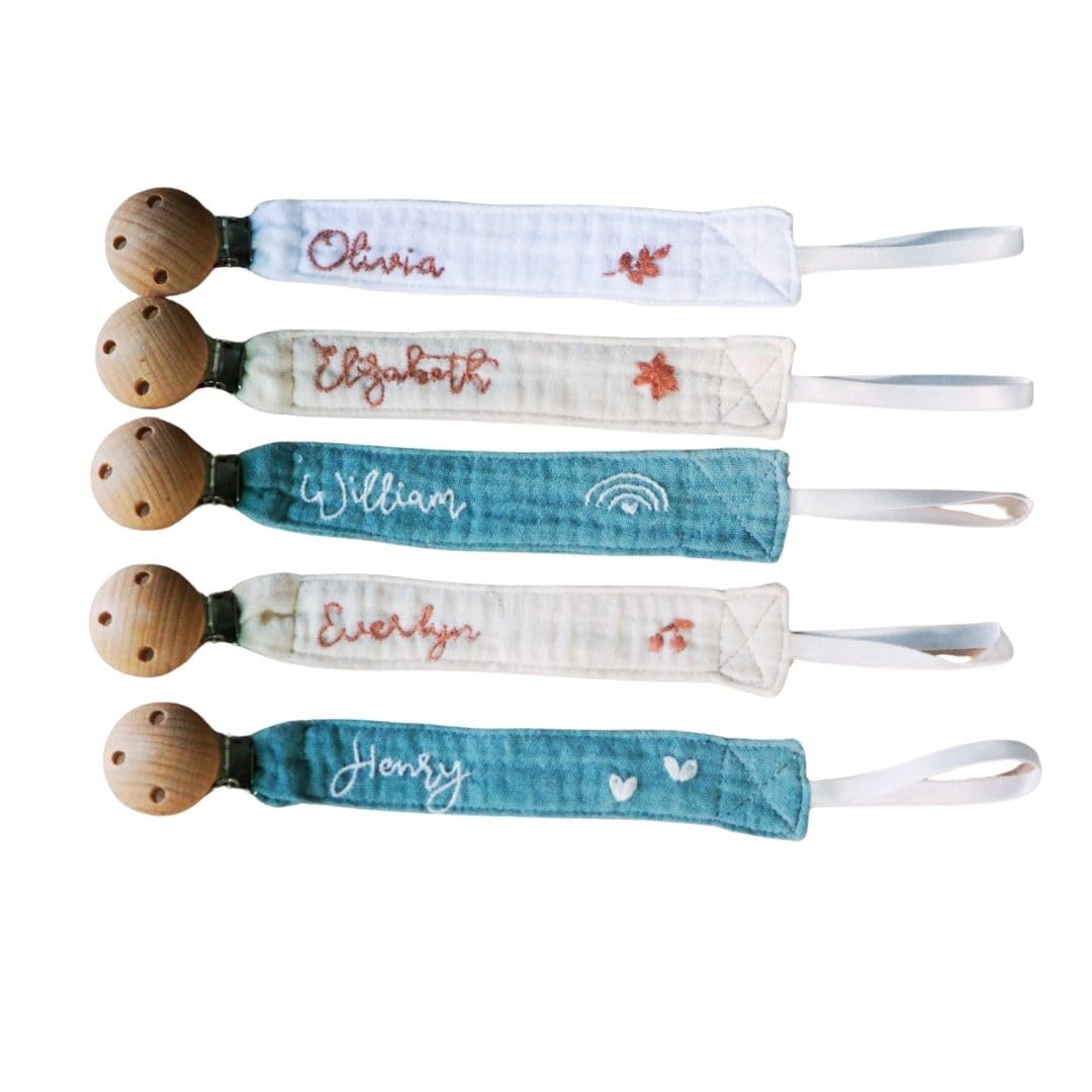 Whether you're shopping for a best friend or a new mom, this embroidered pacifier holder is a unique and memorable gift. It grows with your child and adapts to different stages of baby life. Choose a color that reflects your style and your baby's personality, and gift a piece that will be cherished for years to come.