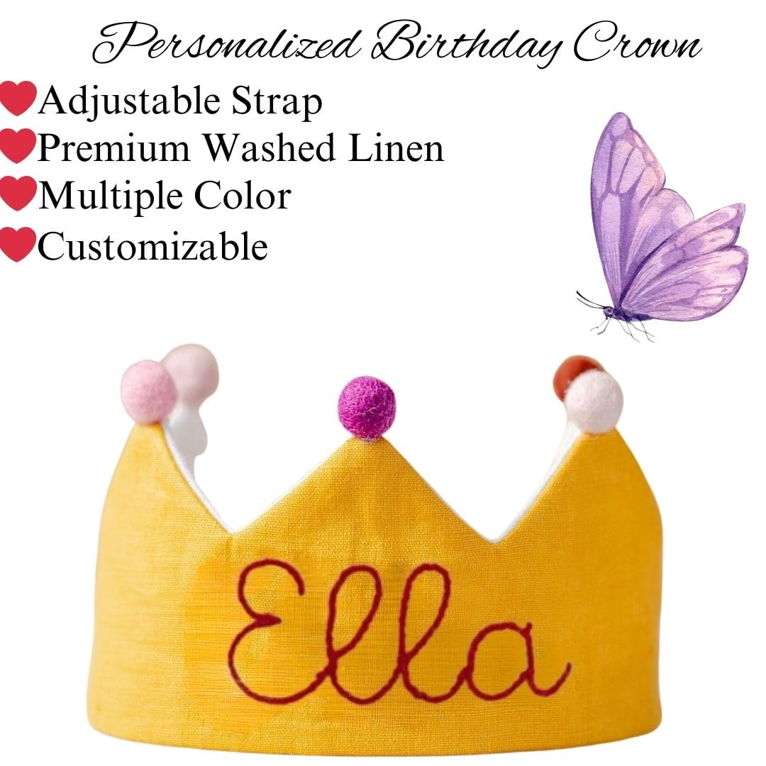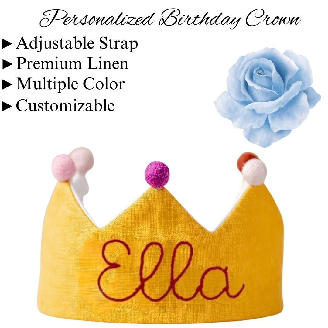 Whether it's a baby shower, a first birthday, or a milestone celebration, this crown is designed to bring joy and style. The combination of soft linen, eye-catching embroidery, and playful details makes it the perfect way to make any birthday or party special for your baby girl.