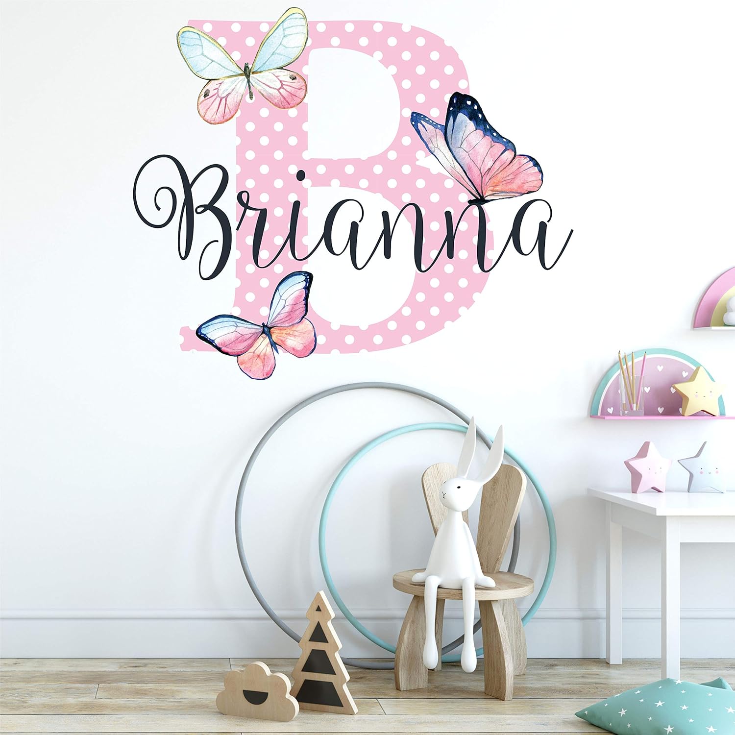 Add a whimsical and elegant touch to your babyâs room with this custom vinyl wall decal. Designed with a soft pink and white polka dot pattern and delicate watercolor butterflies, it creates a charming and personalized space that feels special and unique.