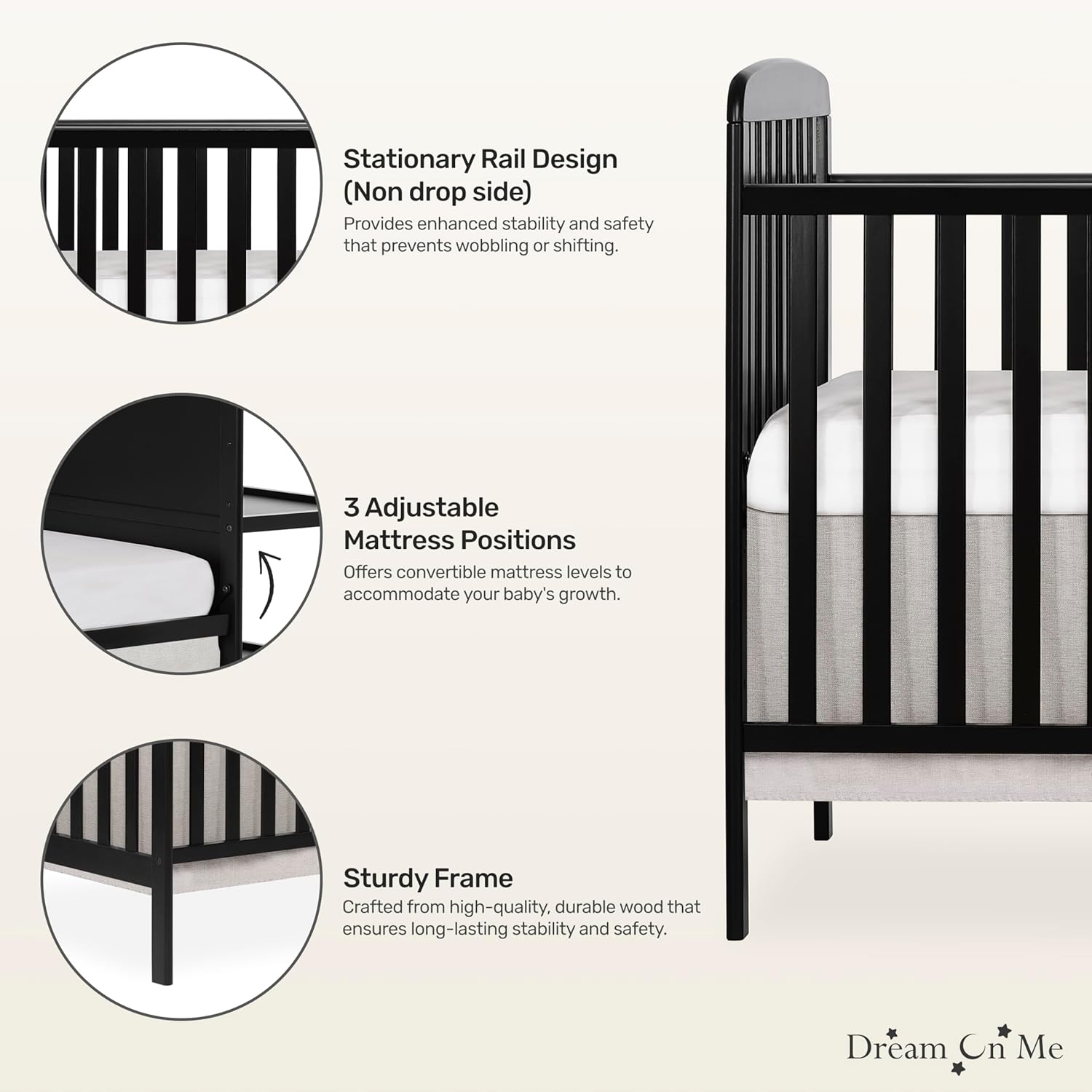 Equipped with a custom fit 1" changing pad and three adjustable mattress positions, it offers the perfect fit for newborns through toddlers. The stationary non-drop side rail system provides added safety, ensuring your little one sleeps securely. With non-toxic finishes, itâs not only safe but also easy to customize to match your home decor.