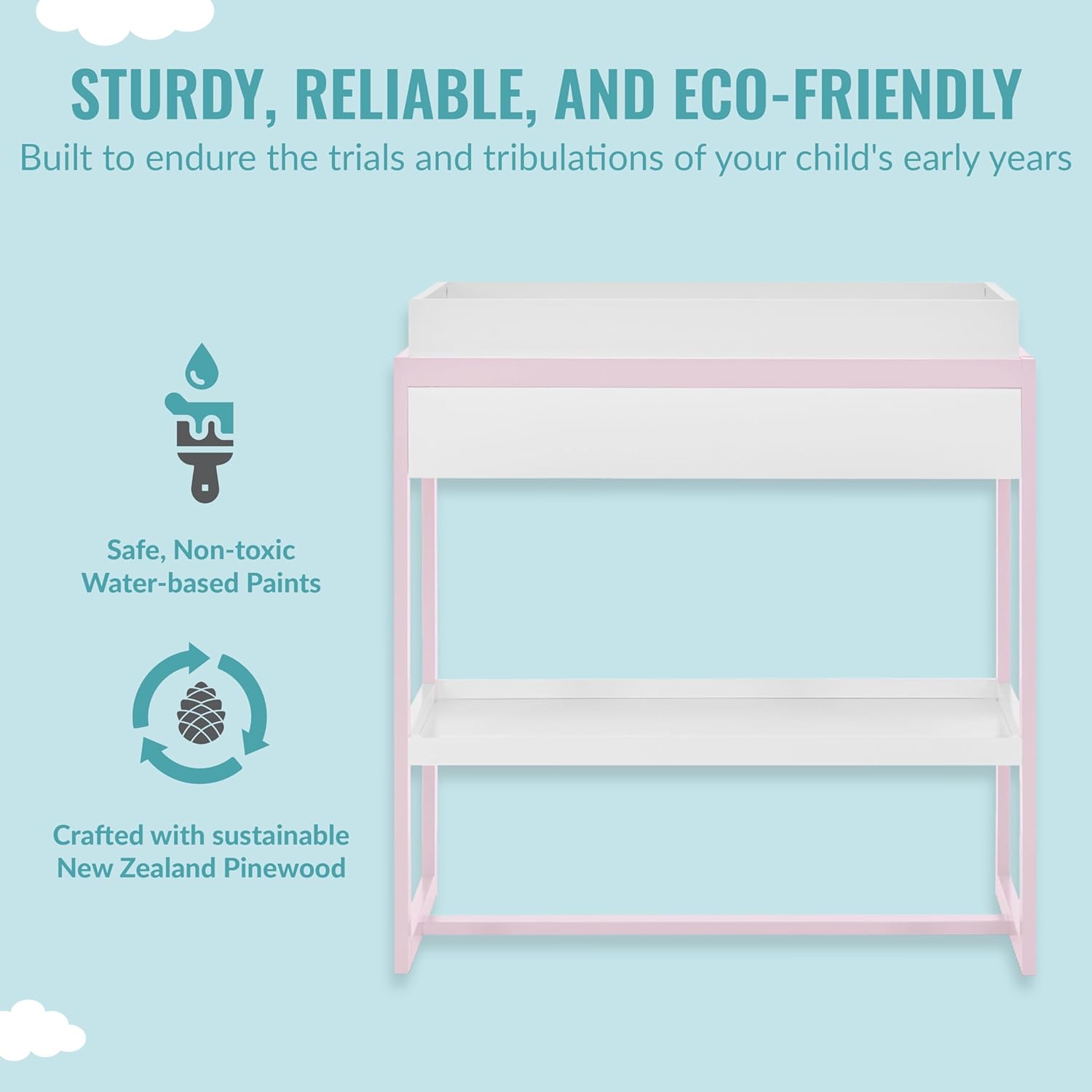 Featuring a spacious fixed shelf, this changing table offers easy access to store diapers, wipes, and baby essentials. The solid New Zealand Pinewood frame ensures durability, while the non-toxic finish keeps your babyâs environment safe and clean.