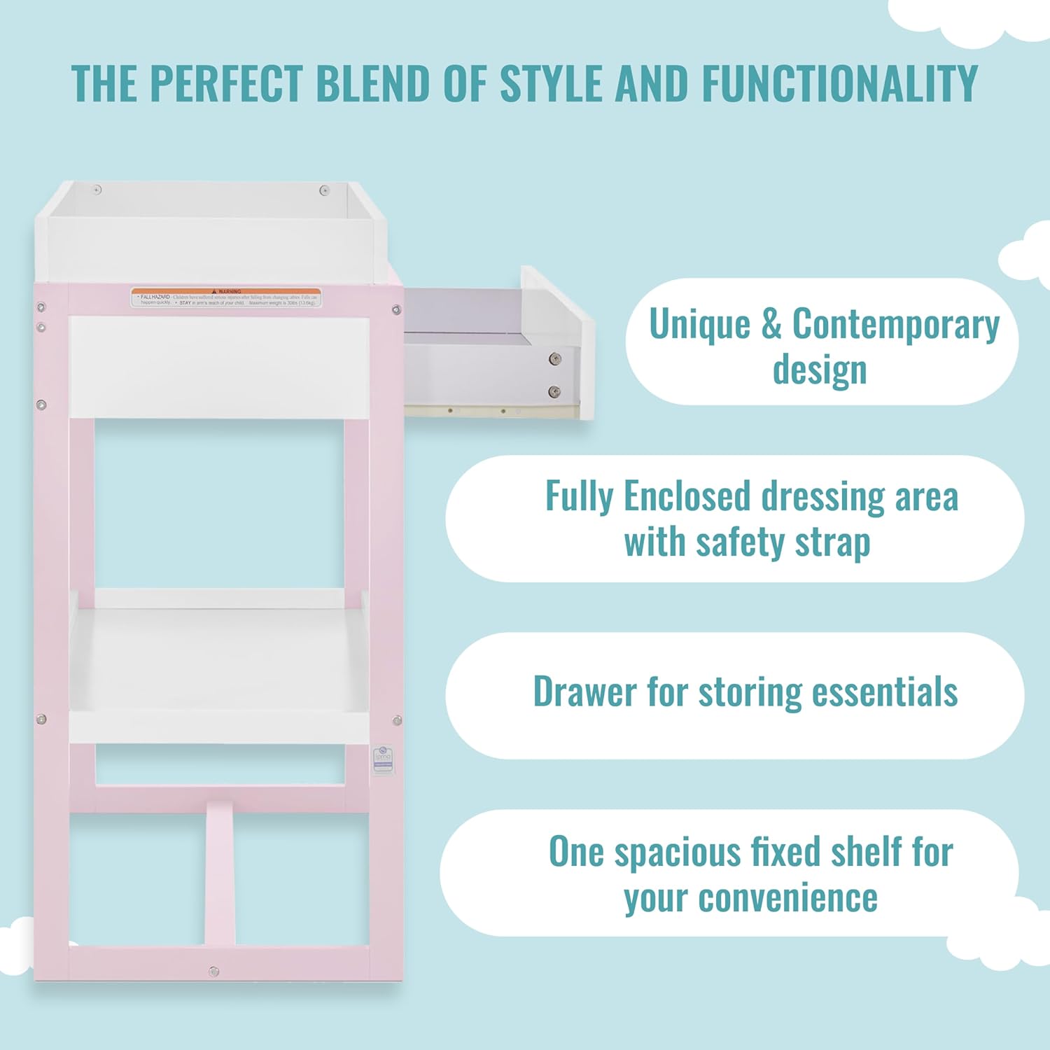 The enclosed dressing area comes with a secure safety strap, helping to prevent accidental falls and keep your baby safe during changing and dressing times. This is more than just a changing tableâit's a reliable, practical, and stylish part of your baby care setup.