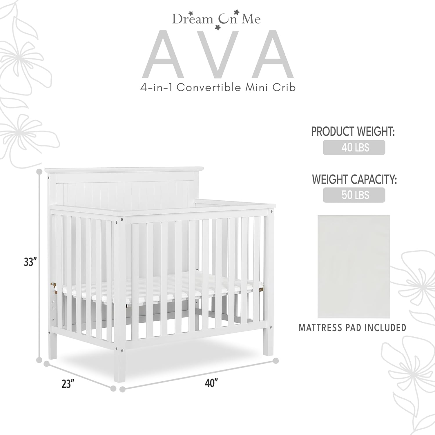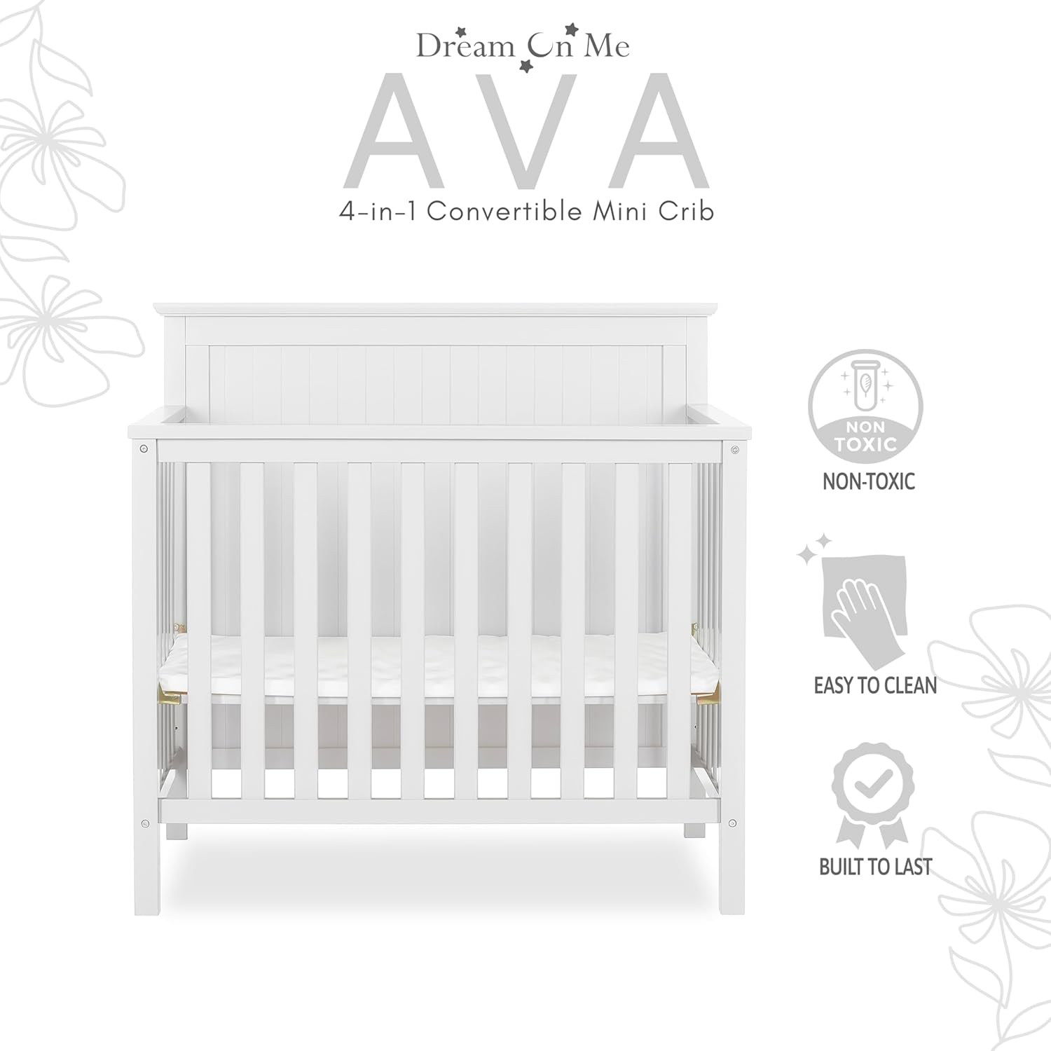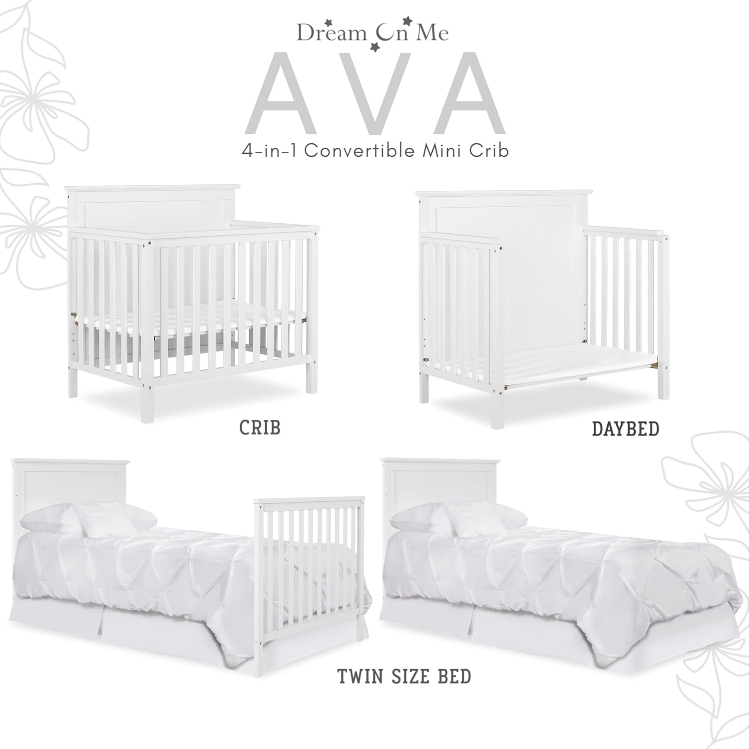 This crib is a smart choice for parents who want a versatile and long-lasting solution for their baby's room. With its 4-in-1 design, the Ava evolves from a mini crib to a daybed, toddler bed, and finally a twin-size bed. No need for multiple purchasesâjust one piece that grows with your child from day one.