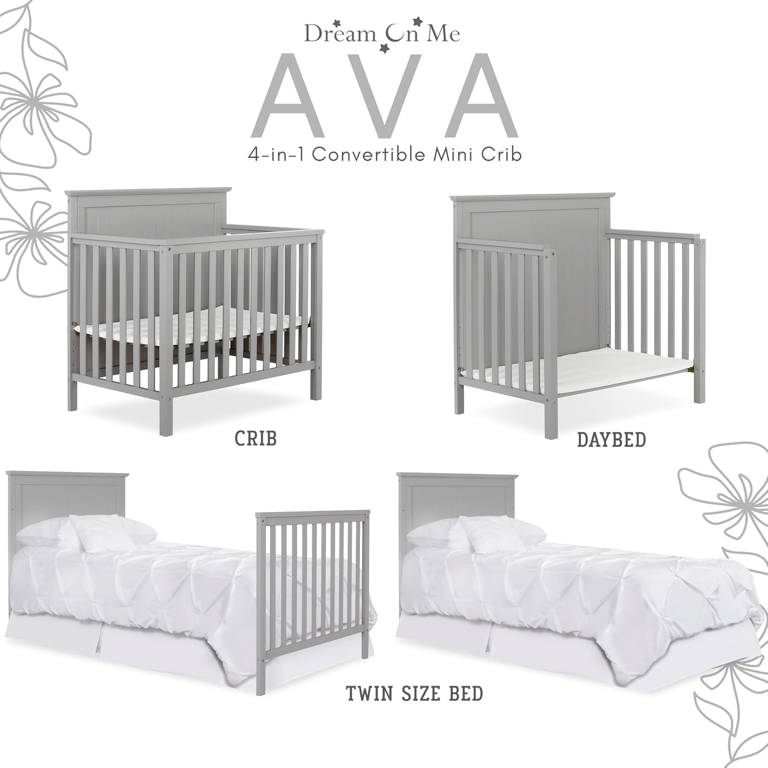 Whether you're starting your first family or making an upgrade, the Ava 4-in-1 crib is the ideal choice. Comes with all the tools and instructions you need to assemble it quickly and easily. Give your baby the comfort, safety, and style they deserve with this multi-functional nursery essential.