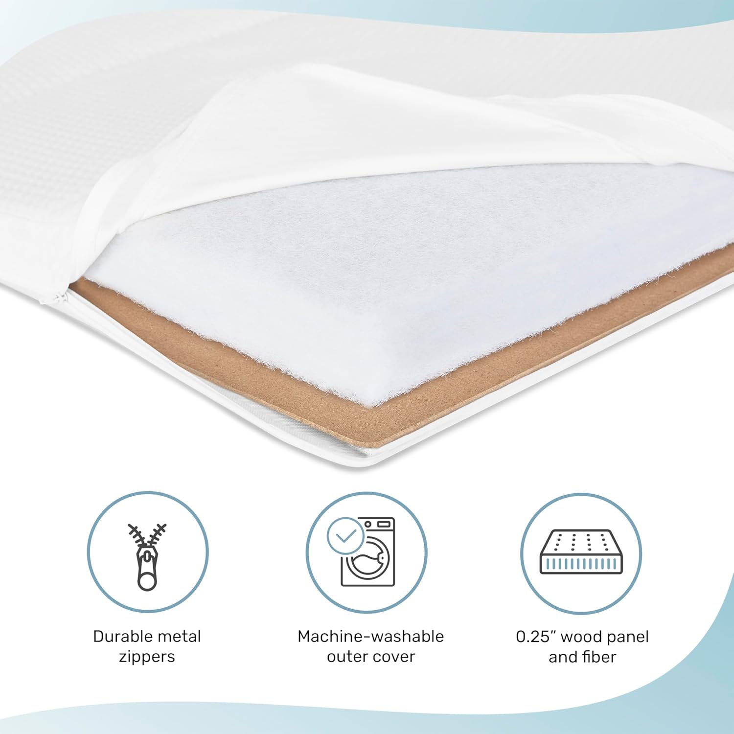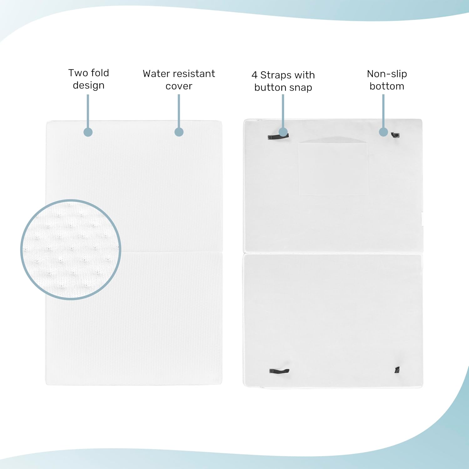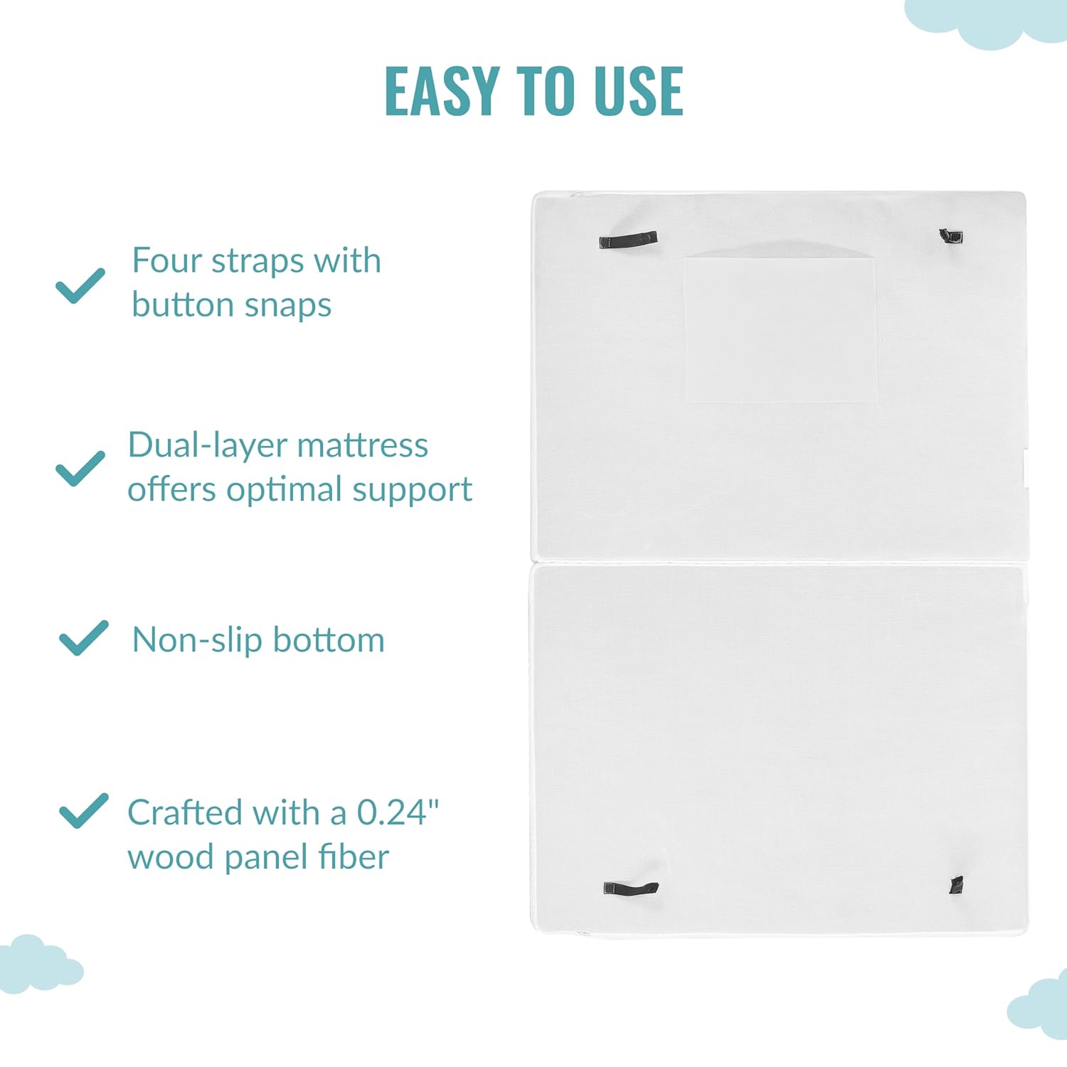 Designed specifically for 38" x 26" playards, this mattress pad combines style and functionality to give your baby the best sleep experience. Its sleek white finish complements any nursery or room decor, making it a versatile addition to your baby's space. Engineered with a water-resistant cover, this mattress protector is effortless to clean, helping you maintain a hygienic environment for your little one. The non-slip bottom ensures a secure fit, keeping the pad in place during use. The durable metal zippers make removing and replacing bedding simple and hassle-free. With JPMA and Greenguard Gold certifications, you can rest assured that this mattress pad meets the highest safety and environmental standards. Whether you're at home, traveling, or staying in a hotel, it provides a clean and comfortable surface for your baby to sleep on without compromising on quality or peace of mind.Dream On Me Mattress Pad - Safe, Comfortable Sleep for Your Baby
