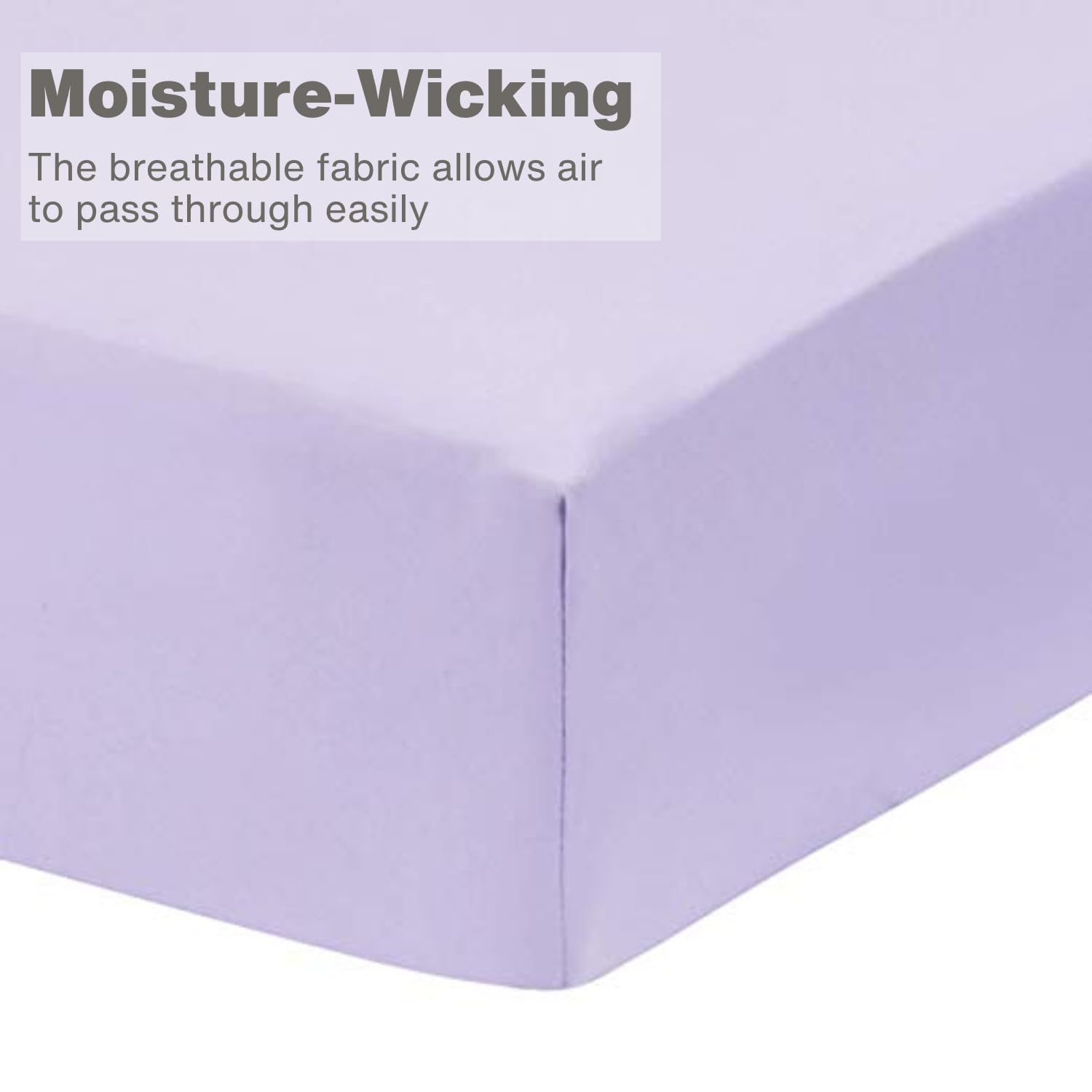 The full elastic trim and deep pockets help keep your babyâs legs from slipping through, promoting better sleep and safety. Available in soothing lavender and pink shades, these crib sheets add a beautiful and calming touch to your nursery design. Plus, they're fade-resistant and easy to care for, making them a long-lasting, reliable choice for everyday use.
