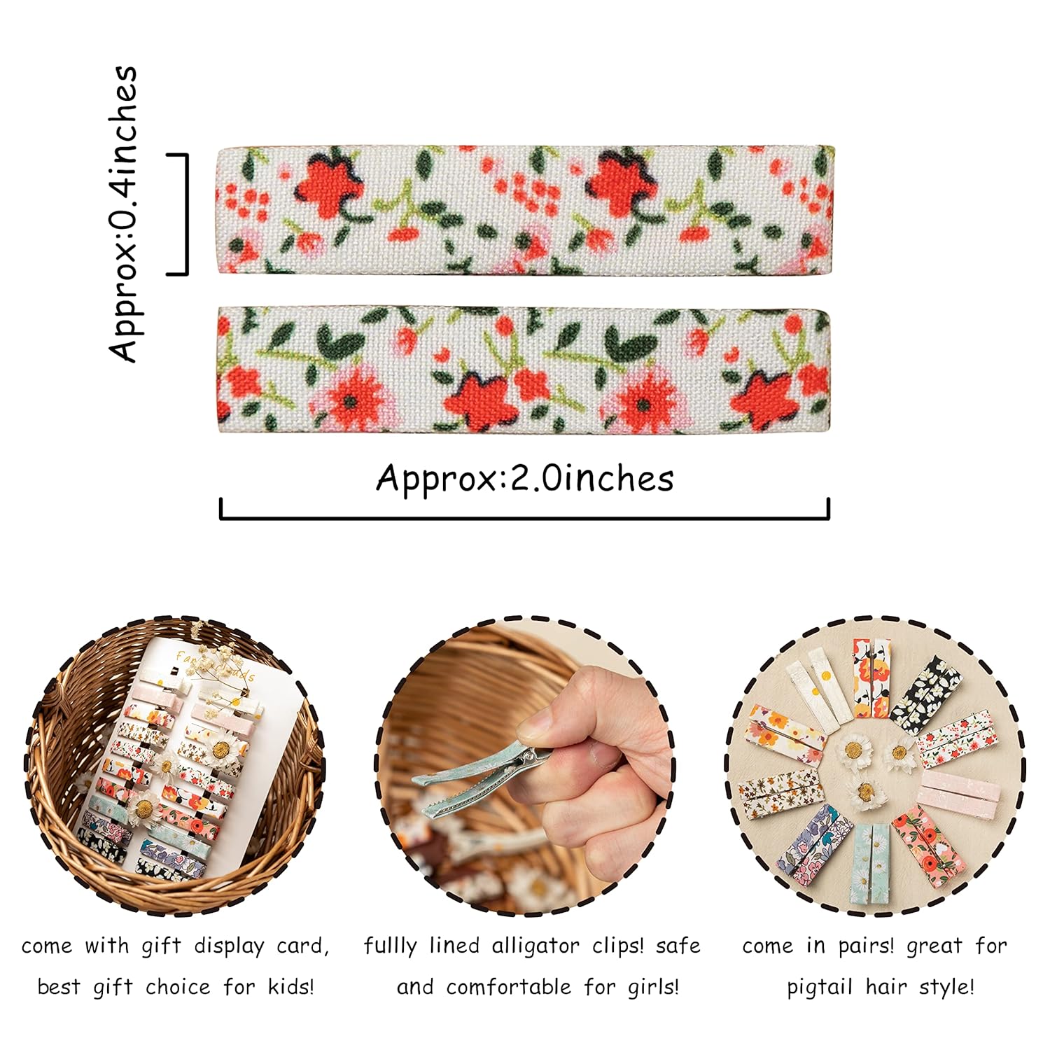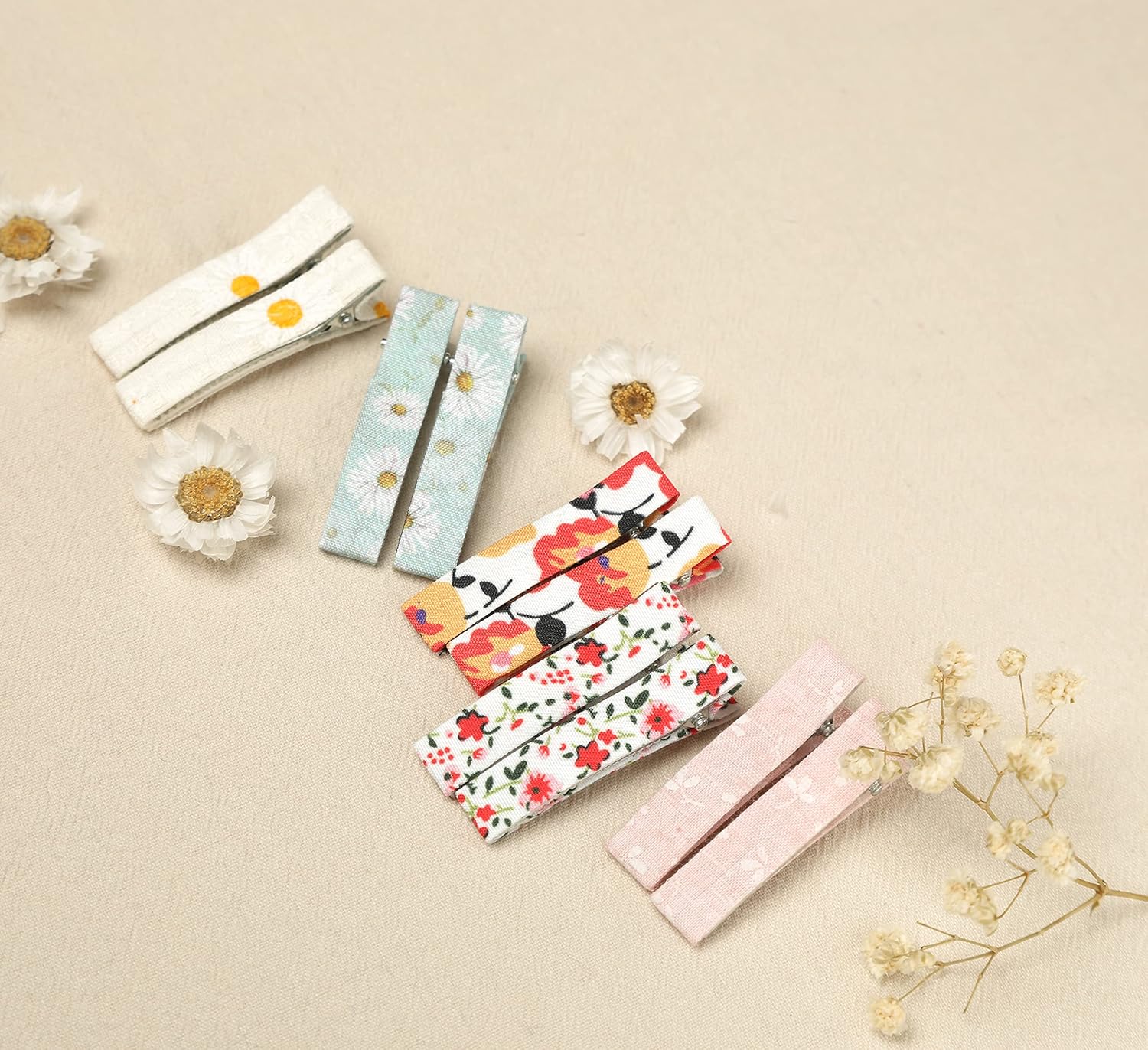 Each clip features a unique floral pattern, such as daisies, leaves, and wild flowers, with vibrant colors like red, pink, white, green, and yellow. These designs add a touch of elegance and charm to any hairstyle, whether you're out for a walk, attending a party, or simply running errands.