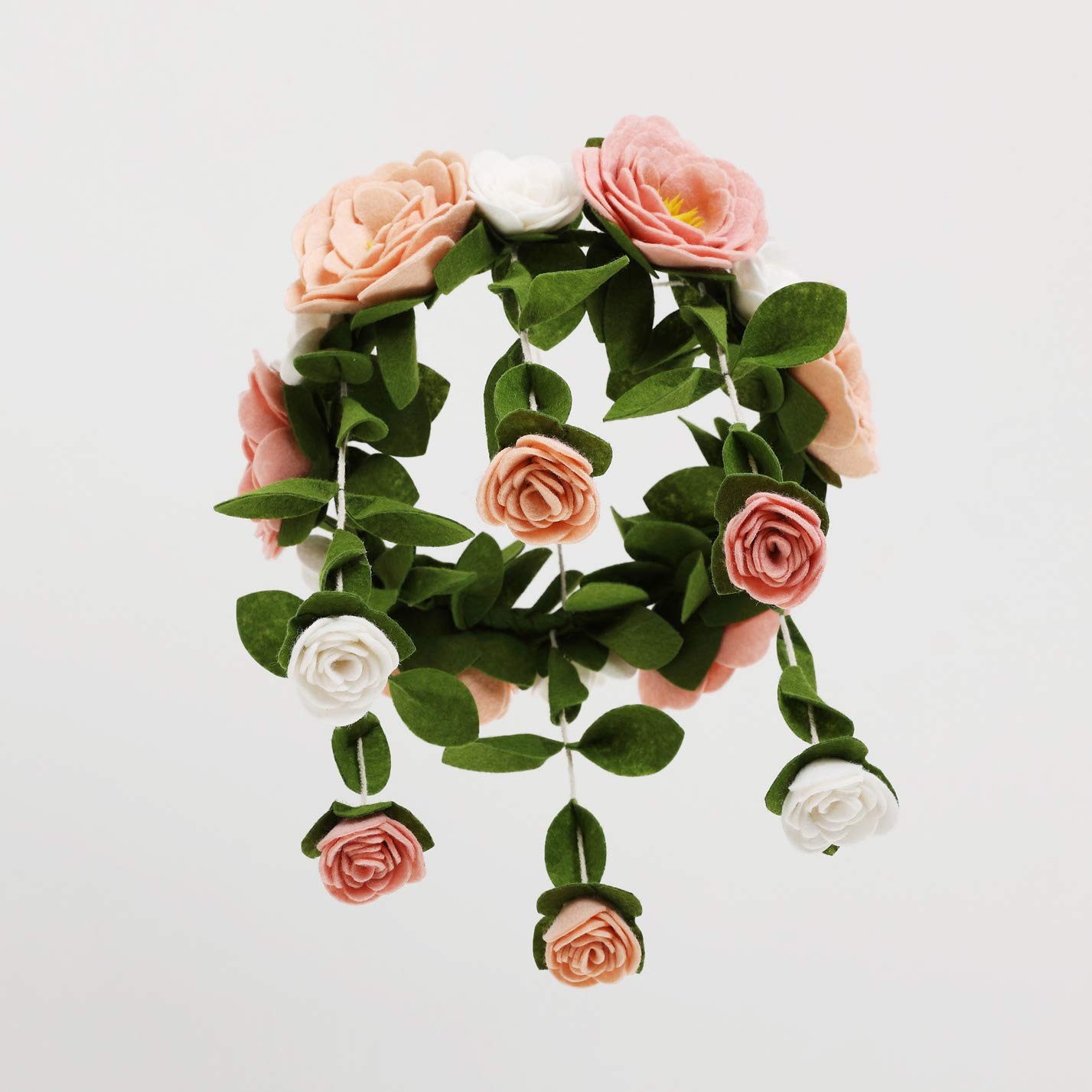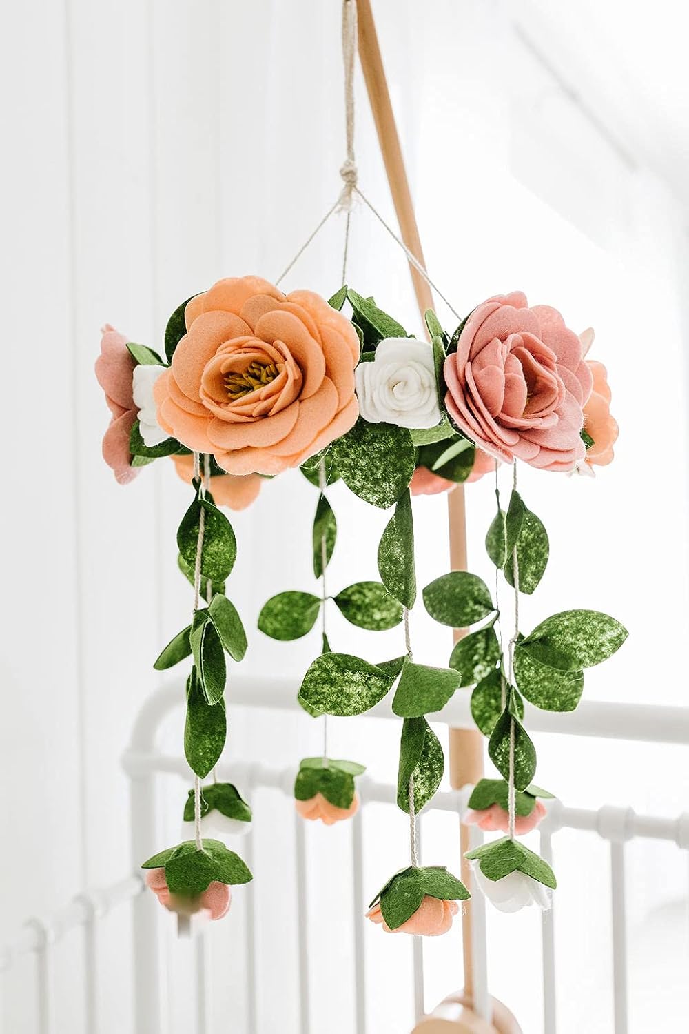 A handmade rose crib mobile made of eco-friendly felt and birchwood, perfect for adding a touch of elegance to your nursery. Ideal as a baby shower gift or registry present, brings a serene garden vibe to your baby's room.