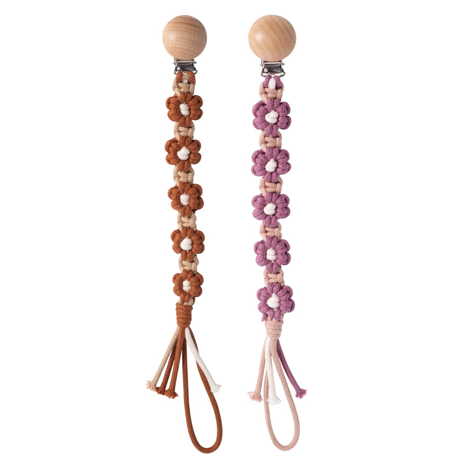 Keywords: floral daisy pacifier clip, boho wooden pacifier leash, handmade macrame baby clip, safe pacifier holder for babies, universal pacifier clip accessory