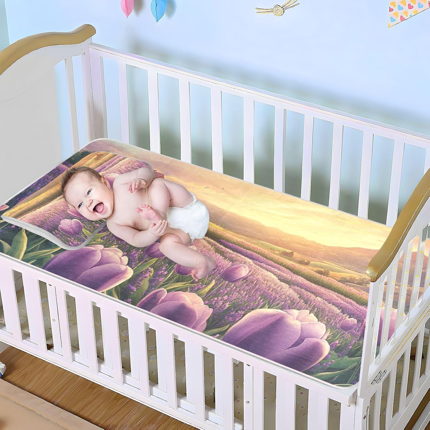 Give your baby the dreamiest sleep experience with our Flower Lavender Cooling Baby Mattress Pad. Designed with advanced cooling technology, it helps maintain a comfortable temperature, making it perfect for hot summer nights and every season. The subtle lavender scent adds a calming aroma, creating a soothing atmosphere that helps your little one drift off to sleep more peacefully.