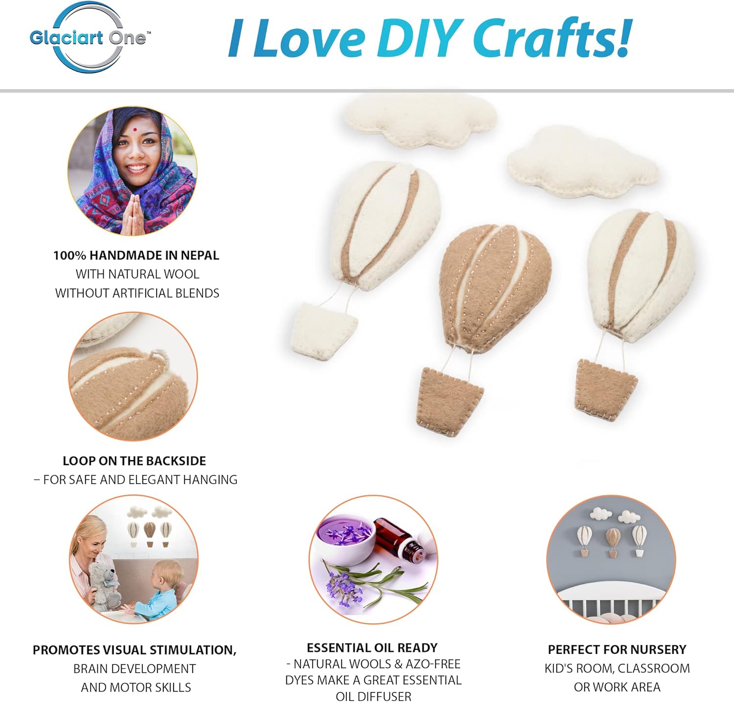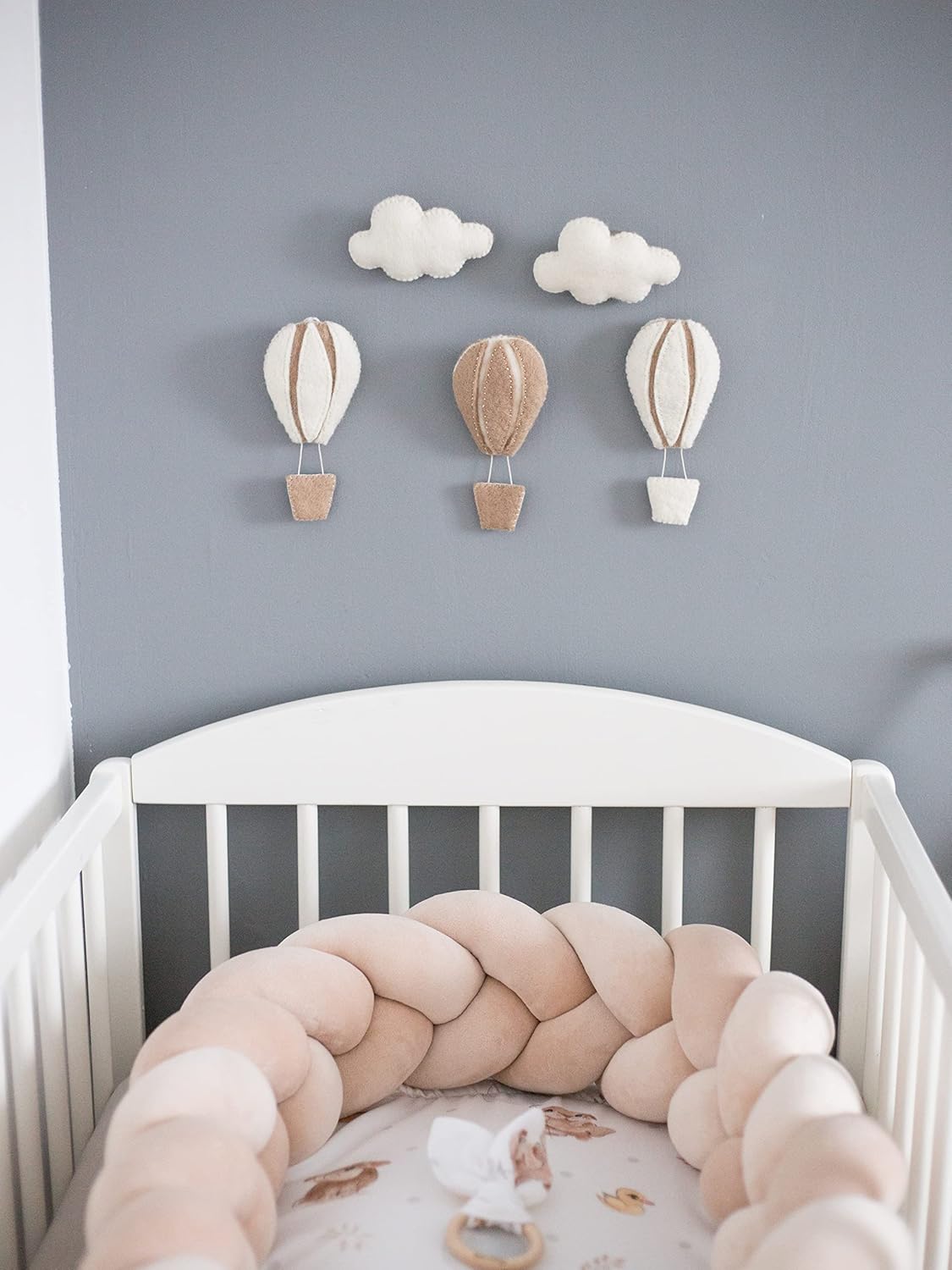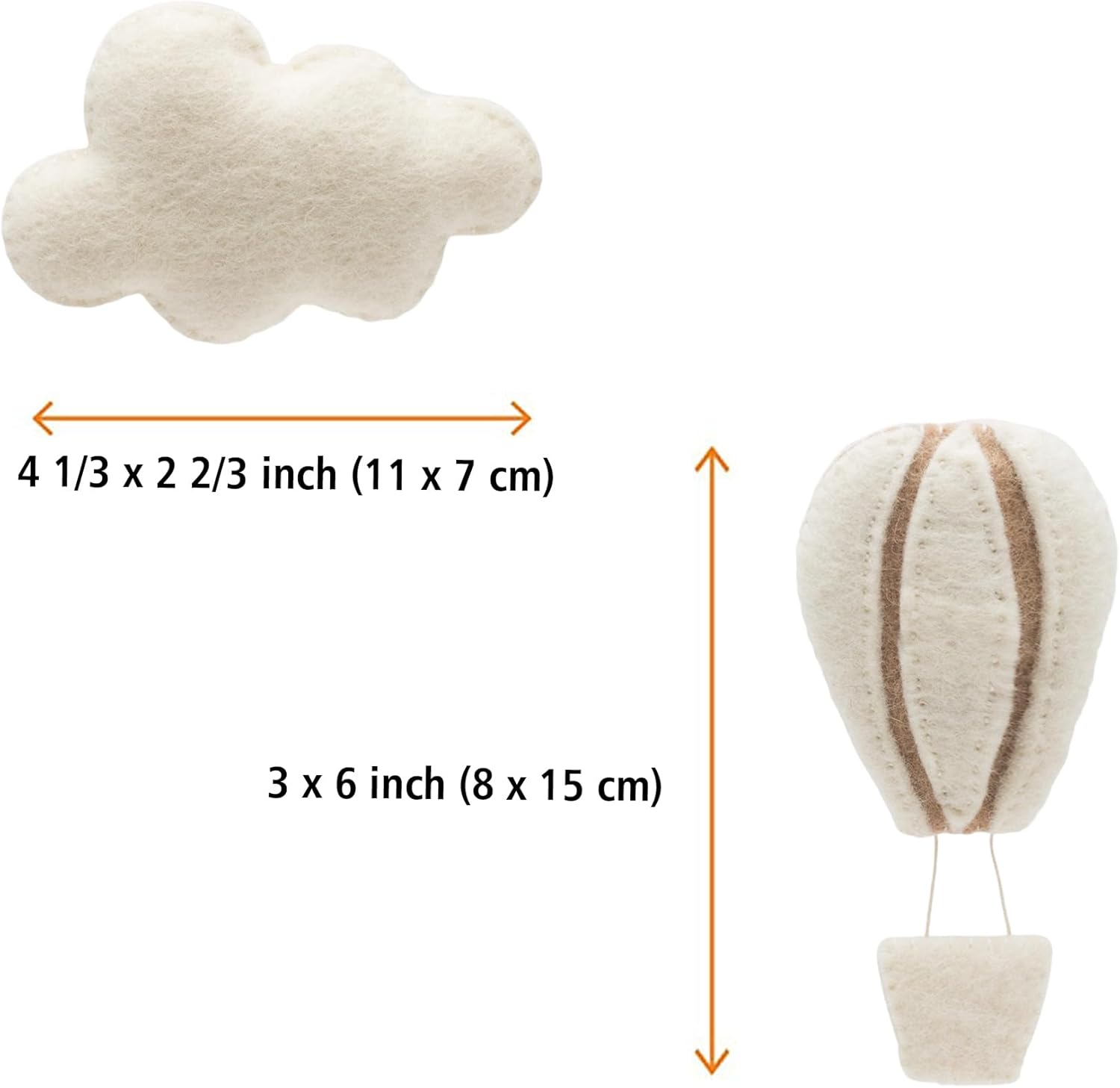Bring a touch of whimsy and charm to your baby's room with this delightful felt wall decor set. Featuring cute hot air balloons and fluffy clouds, it's designed to create a soft and inviting atmosphere that's both stylish and safe for little ones.