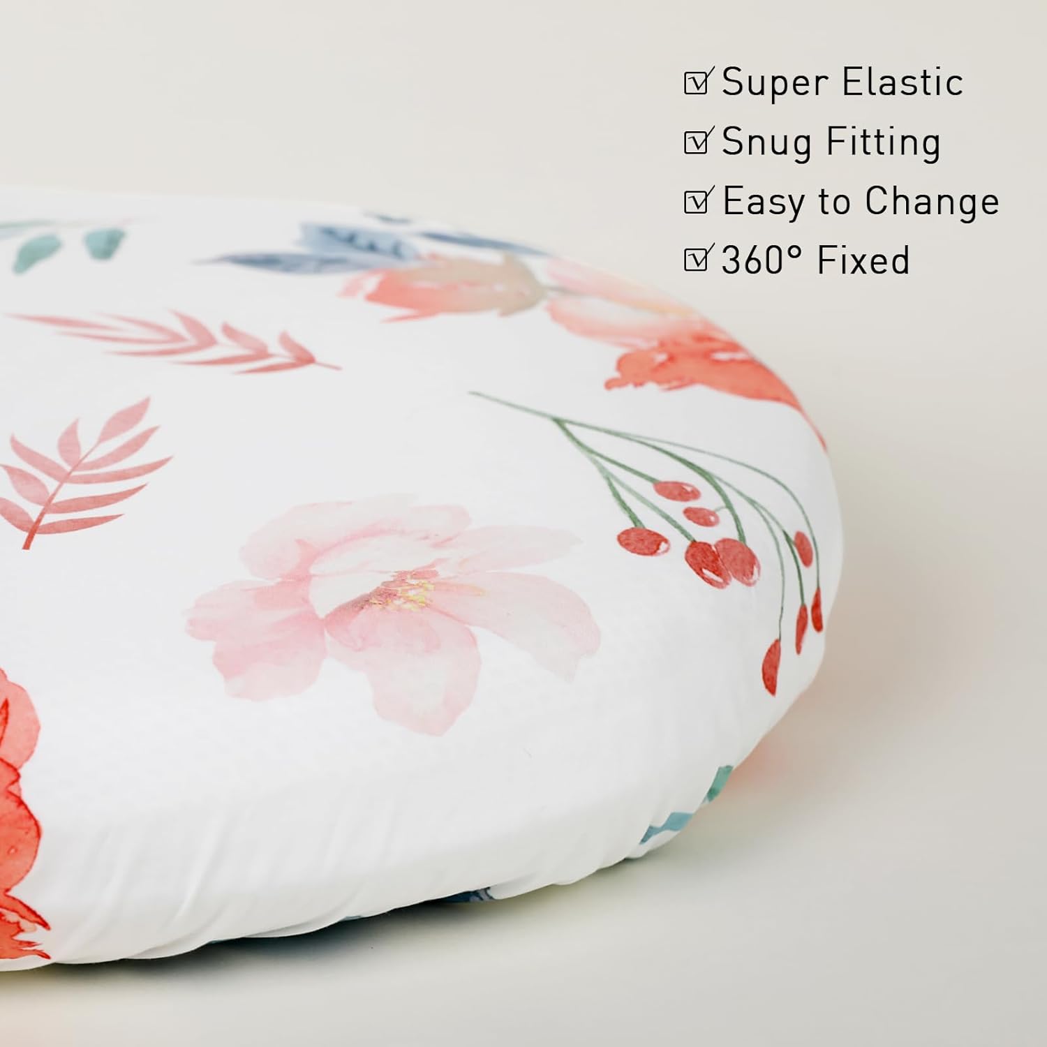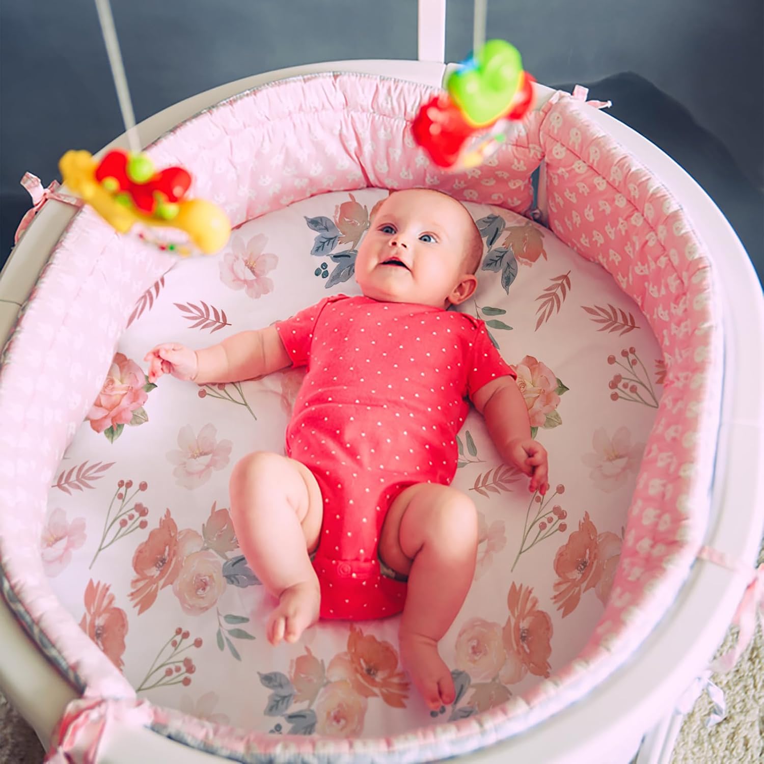 Soft, breathable baby bassinet sheets with a charming floral pattern that adds a touch of elegance to any nursery. Designed for safe and cozy sleep, these fitted mattress covers are perfect for home use or on the go.