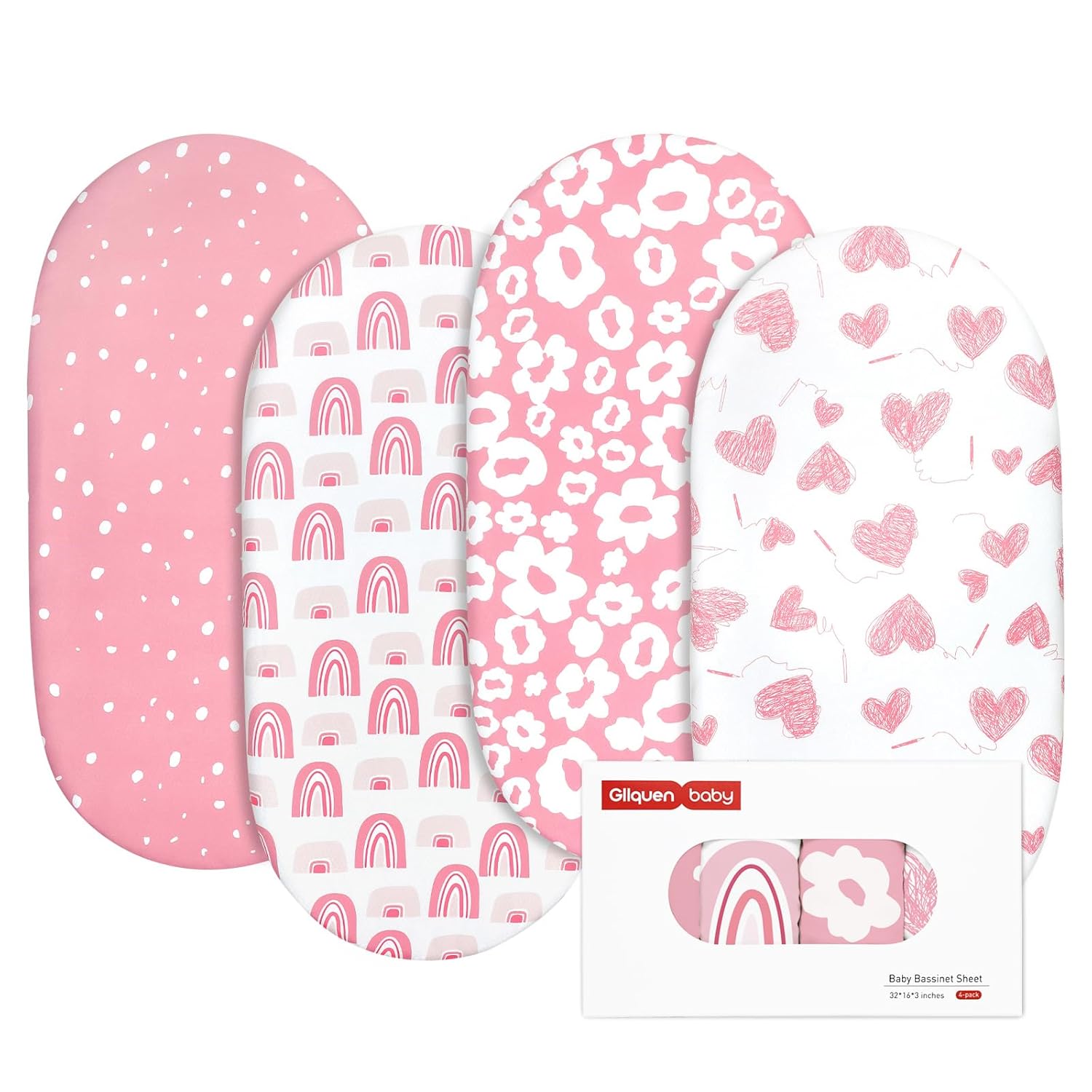 These 4-pack bassinet sheets are a perfect match for bassinets, cradles, or co-sleepers, fitting most standard mattress sizes with ease. Their breathable and hypoallergenic nature makes them ideal for your baby's delicate skin. The charming floral pattern not only enhances the aesthetic of the nursery but also provides a beautiful setting for capturing precious baby moments.