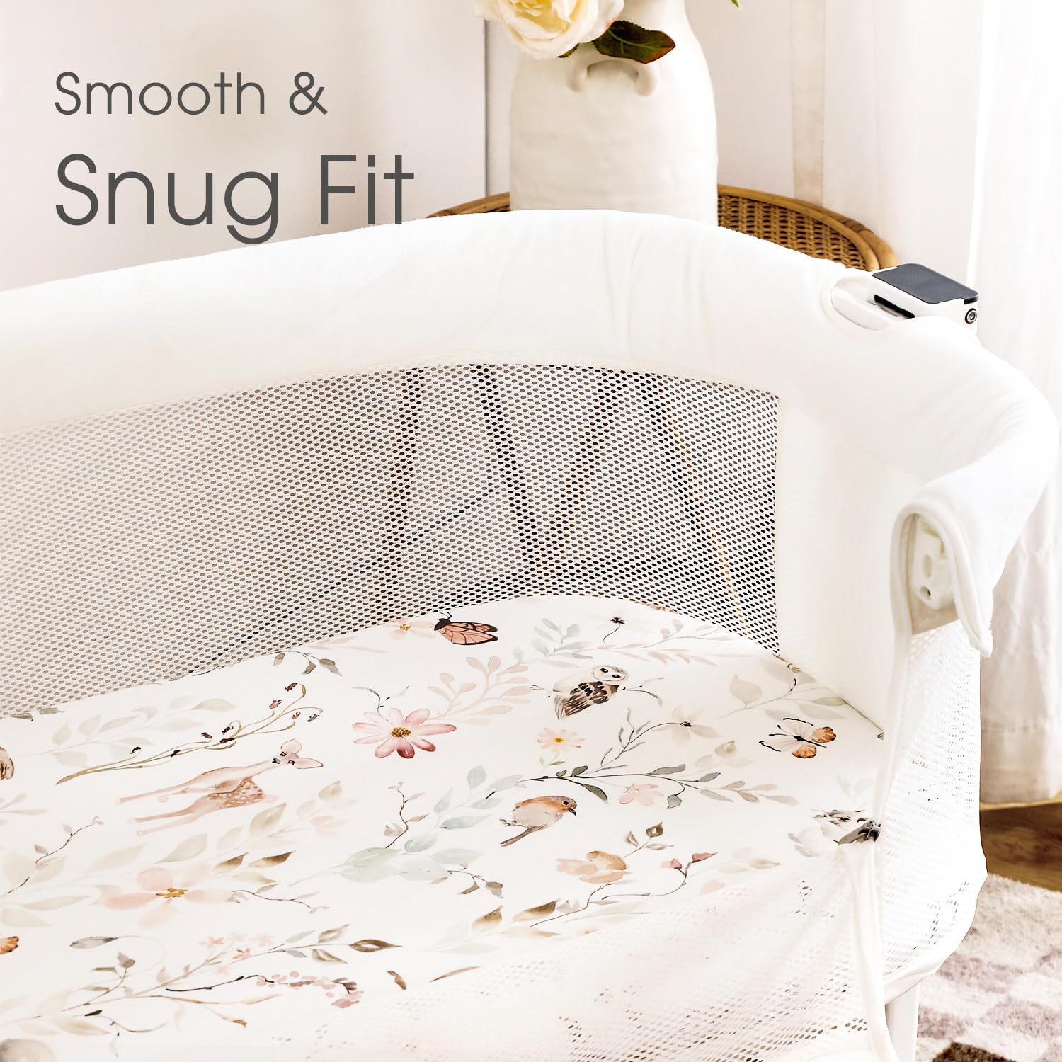 The 4-way stretch design keeps the sheets securely in place on any standard bassinet mattress, making them perfect for both everyday use and overnight sleep. Their soft, breathable material is kind to your babyâs delicate skin while helping to regulate temperature for a restful and peaceful night.
