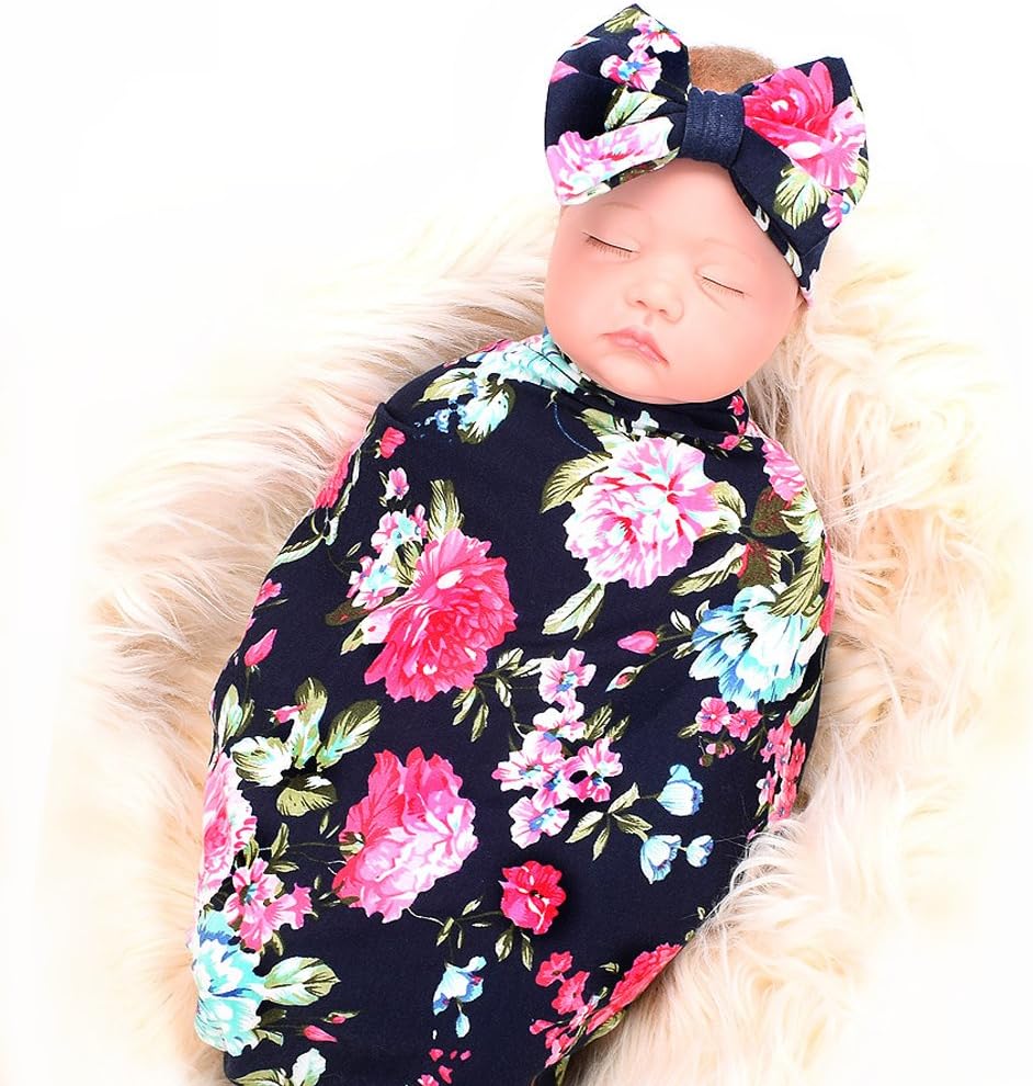 The Galabloomer receiving blanket set is a charming addition to any nursery, designed with a delicate flower print and a timeless navy blue rose hue. This elegant look makes it perfect for creating a warm, inviting atmosphere while baby is sleeping or being comforted.