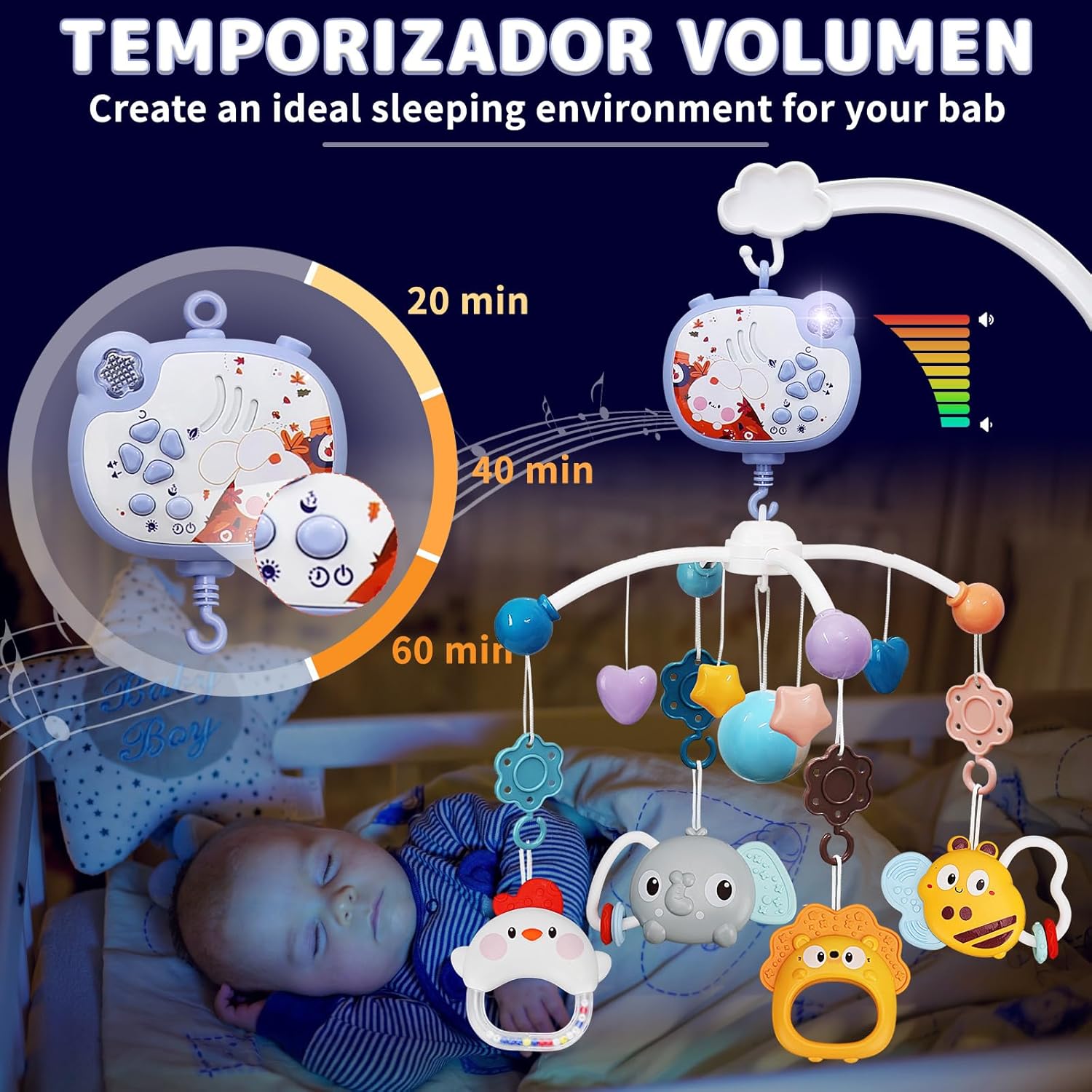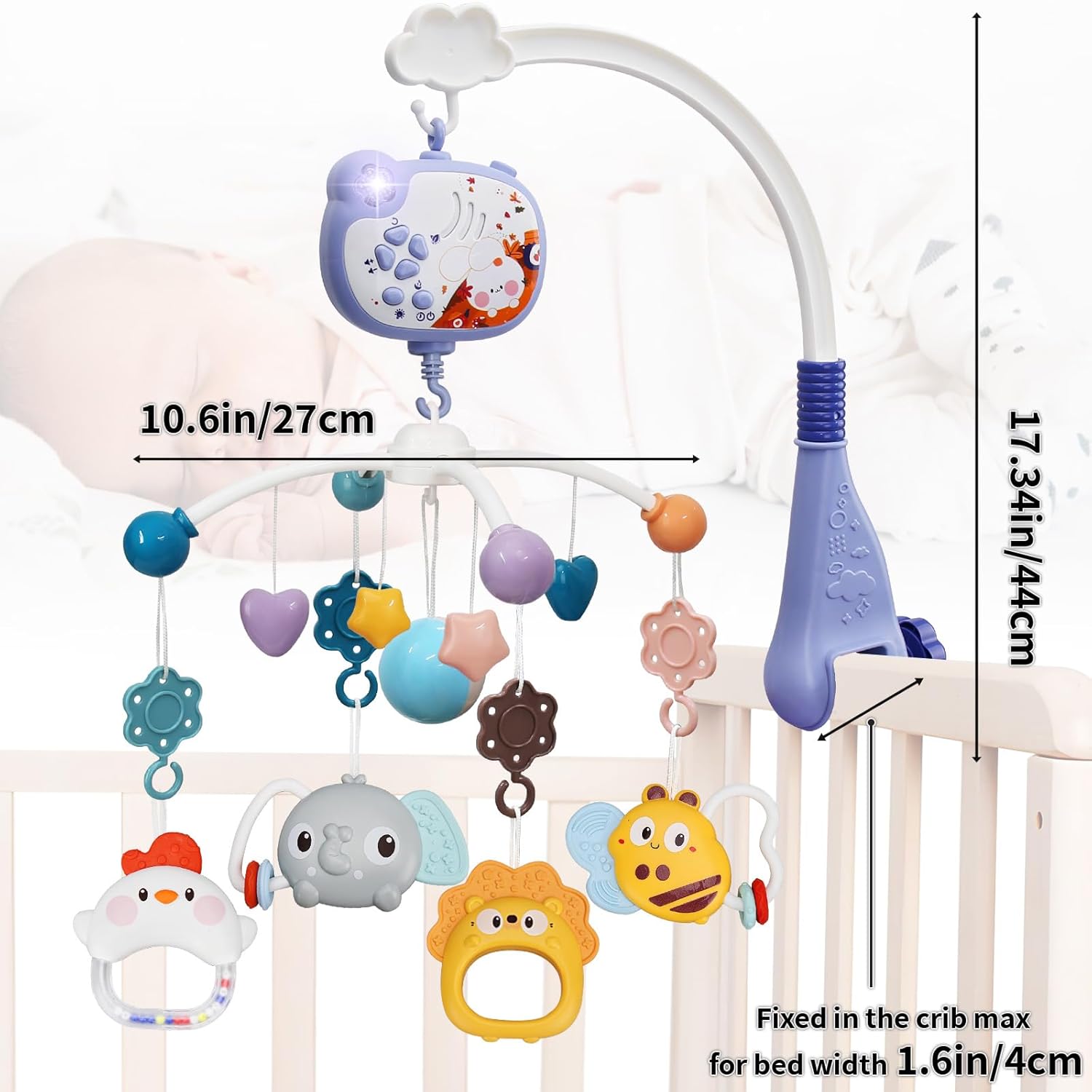 Equipped with a remote control, you can easily manage the music, lights, and rotation from a distance. The timer settings offer added convenience, allowing you to set the duration for peaceful nighttime use. Its secure arm clip design makes installation and removal simple, ensuring it fits snugly into crib bumpers without causing any damage.
