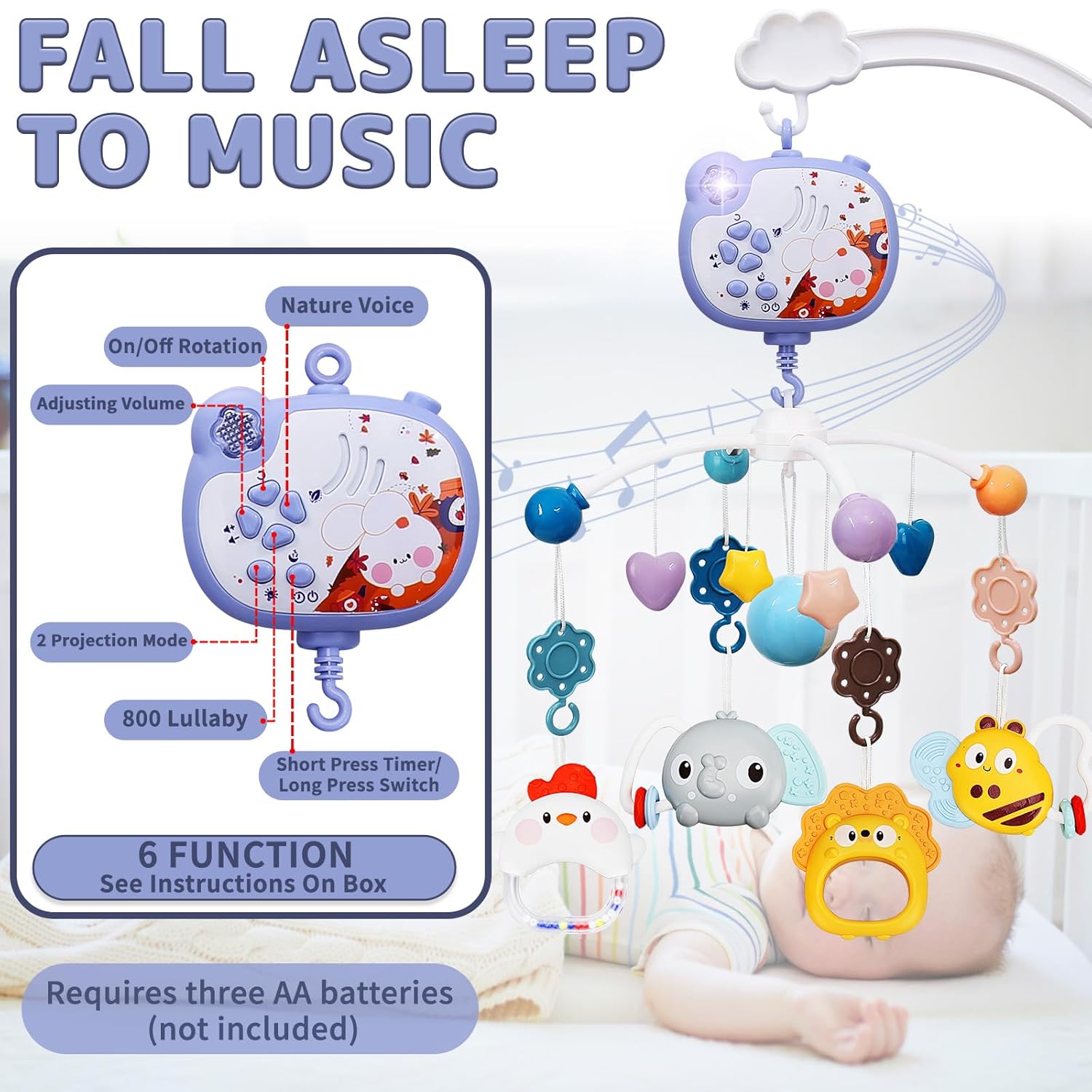 This multifunctional mobile combines music, lights, teethers, and rattles into one charming toy, making it an ideal gift for birthdays, baby showers, and holidays. Perfect for babies from 0 to 12 months, it's a safe, engaging, and thoughtful addition to your baby's room that helps create beautiful, lasting memories.