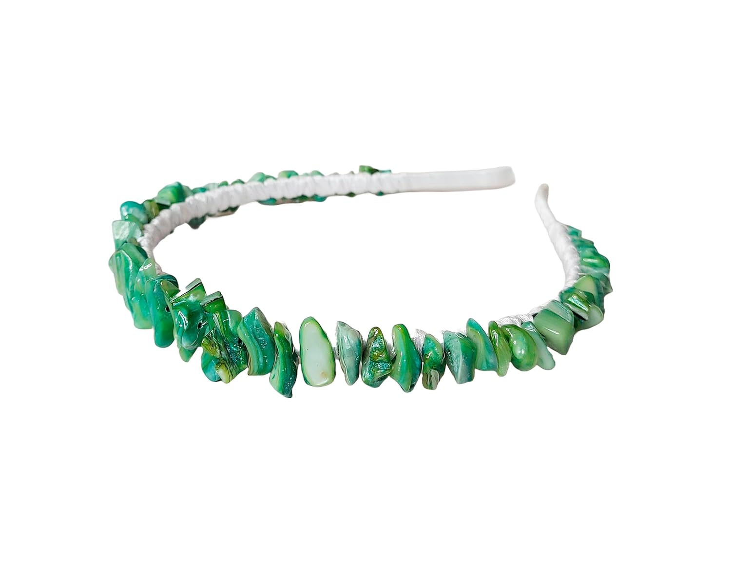 This headband is meticulously crafted using high-quality green pearl and crystal beads, ensuring a refined and radiant appearance. The durable, high-end fabric offers comfort and style all day long, while the adjustable design allows for a secure fit for both adults and children.