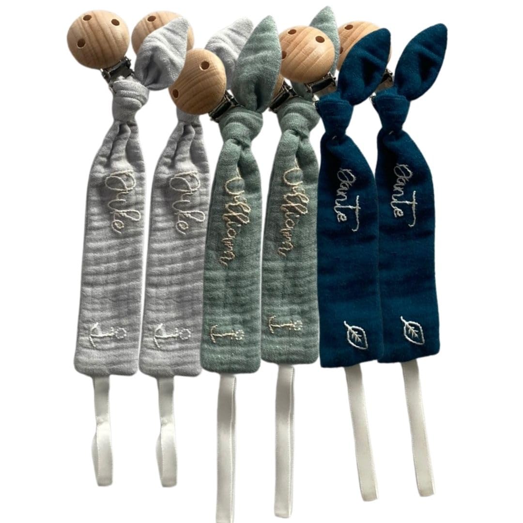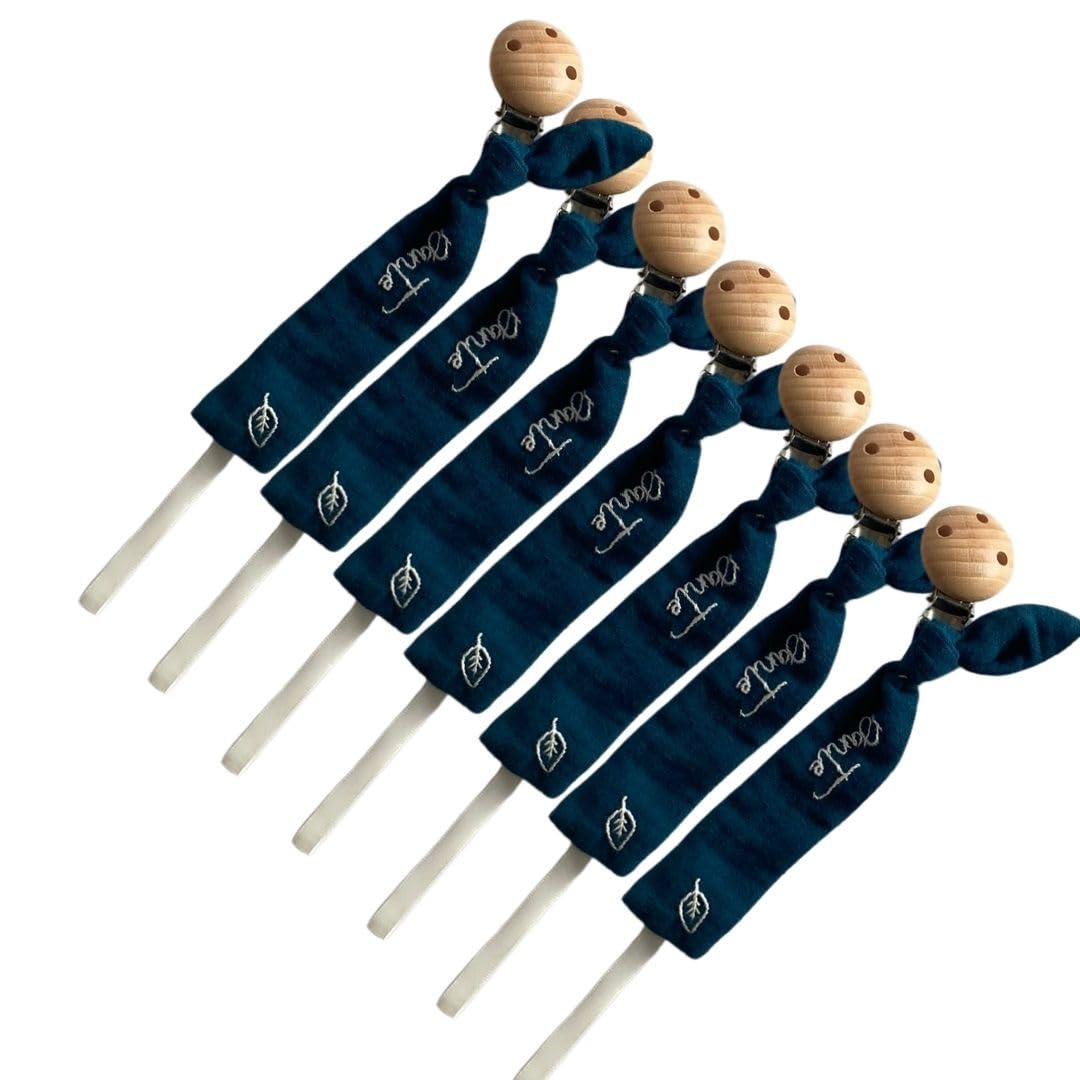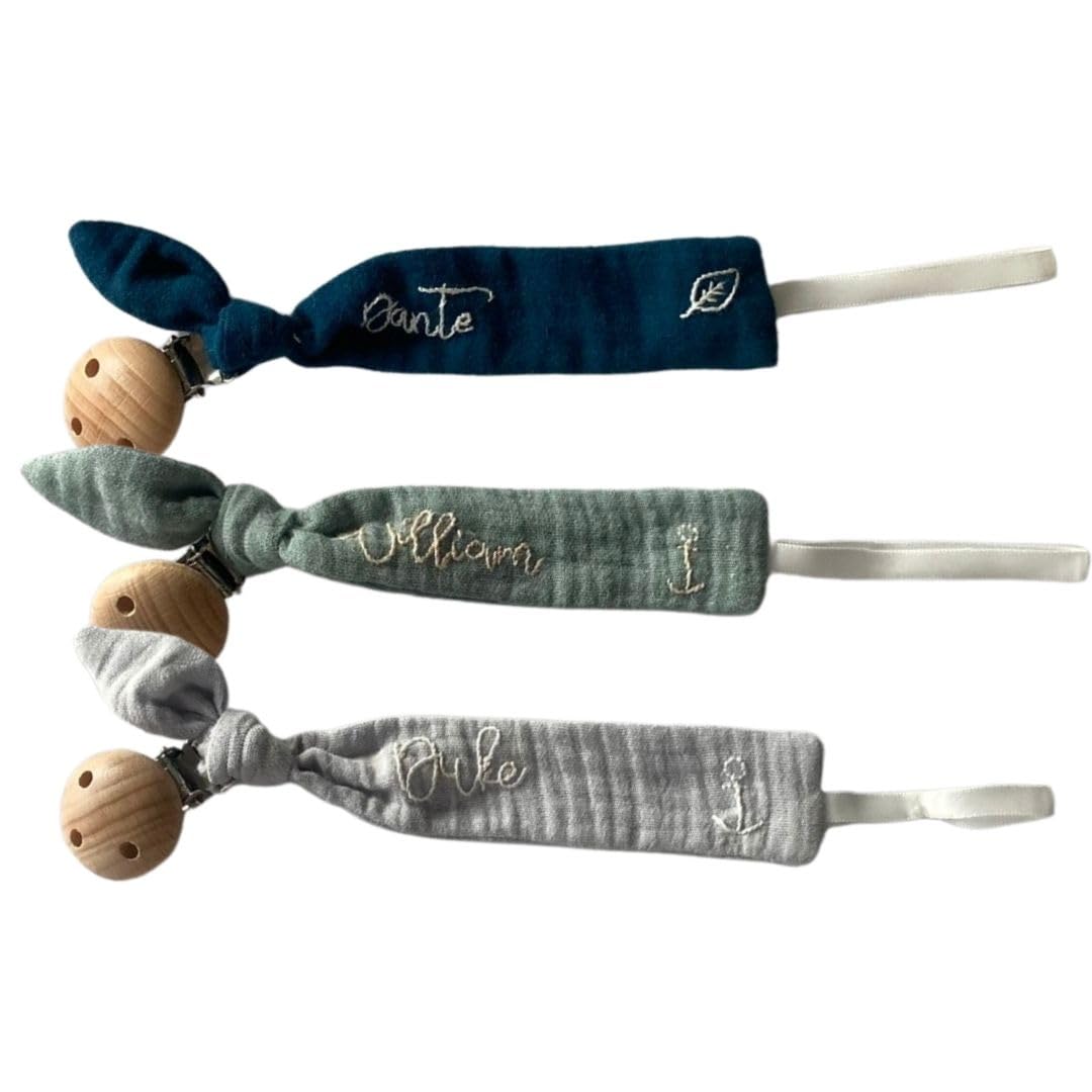 This pacifier clip holder is more than just a practical tool â it's a thoughtful addition to your baby's everyday essentials. It keeps pacifiers organized and secure, reducing the risk of missing, lost, or dirty items. The handmade quality gives it a unique, artisanal feel, while the personalized embroidery adds a touch of love and care that comes through in every use.