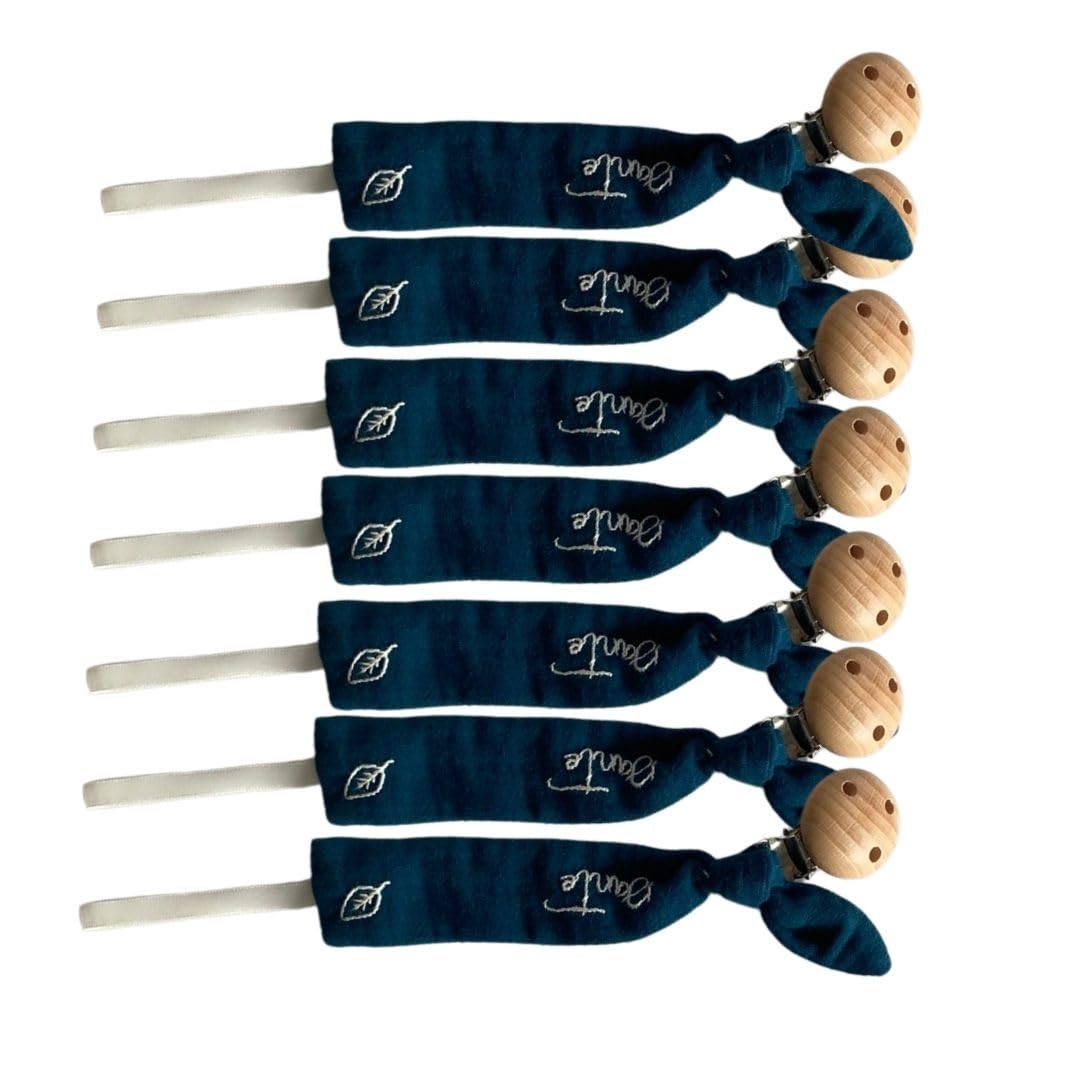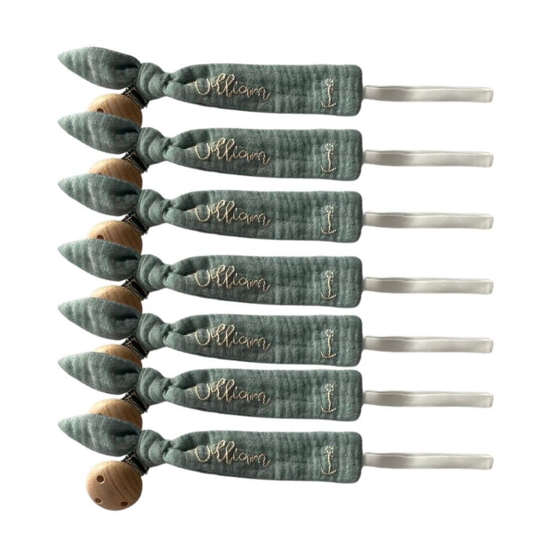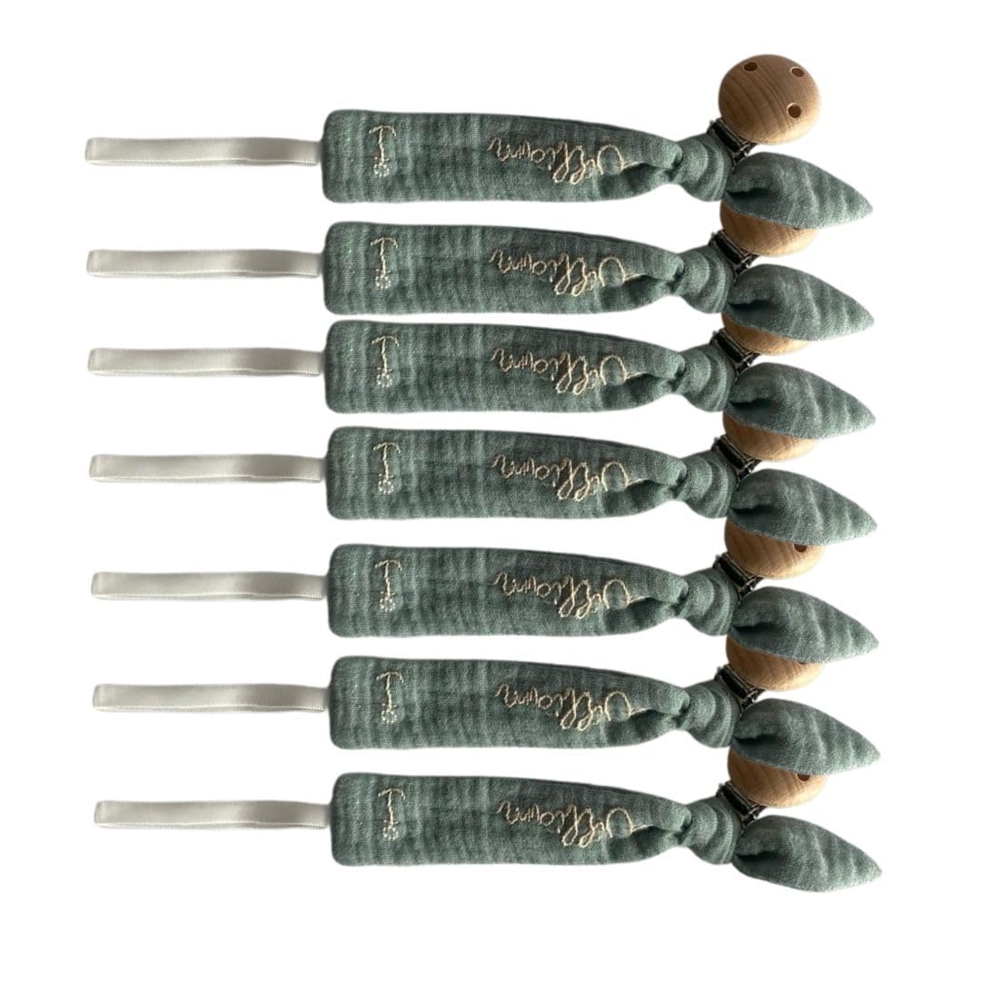 This pacifier clip holder is more than just a practical tool â it's a thoughtful addition to your baby's everyday essentials. It keeps pacifiers organized and secure, reducing the risk of missing, lost, or dirty items. The handmade quality gives it a unique, artisanal feel, while the personalized embroidery adds a touch of love and care that comes through in every use.