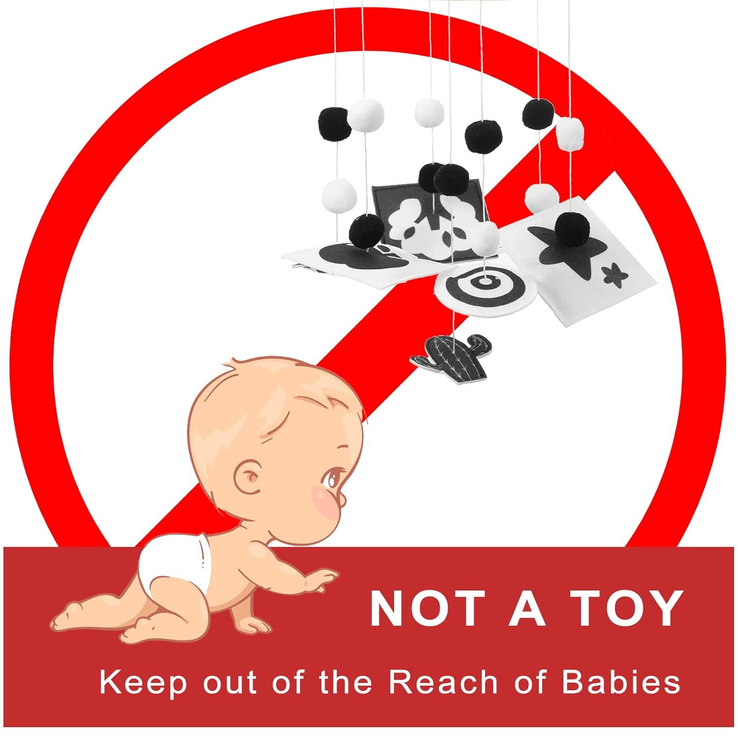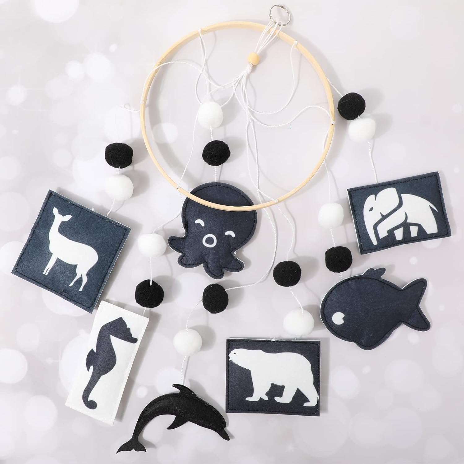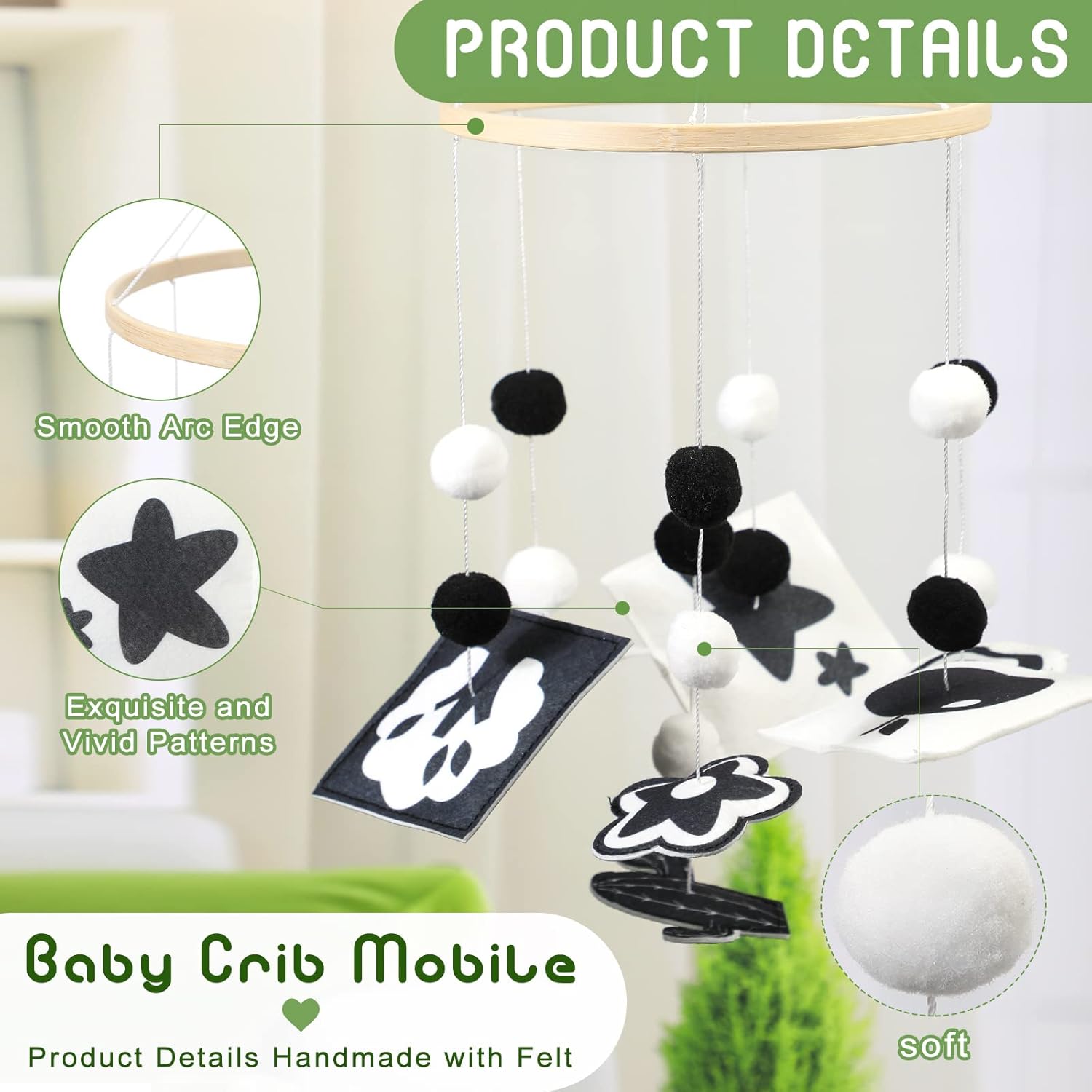 Designed to aid your newborn's visual development, the HyDren Baby Crib Mobile features a calming black and white color scheme that gently captures their attention. Made from soft, high-quality felt, this mobile is safe, non-toxic, and gentle on your baby's delicate skin, creating a serene atmosphere in any nursery.
